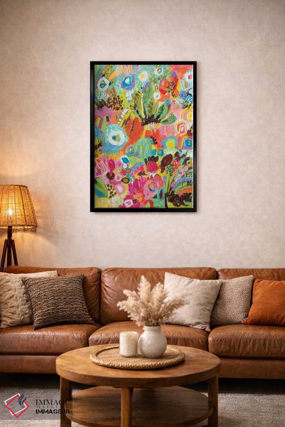 براساس پالت ترکیبی اثر، قاب تیک گرم (چوبی) پیشنهاد اول است و مشکی مات (فریم متوسط) مکمل. برای سفارشهای پروژهای با ابعاد و قابهای اختصاصی با ایماژ در تماس باشید.