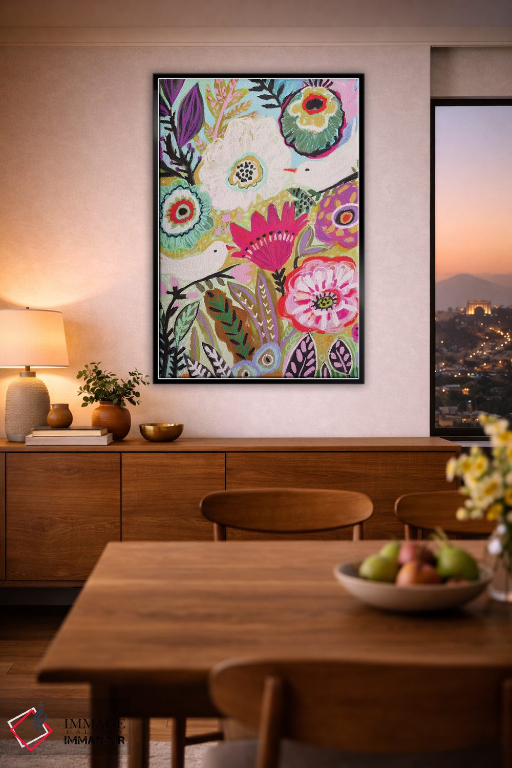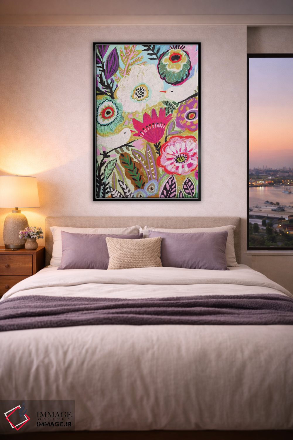 بوم گالری ایماژ نسخهی دکوراتیوِ سطحبالا از یک اثر هنری است. روی کنواس بدون اسید با بافت ظریف و یکنواخت با چاپ هنری به استاندارد جیکلی (Giclée) با سیستم رنگ Epson UltraChrome HDR برای نیمسایههای نرمتر و سایههای جزئیتر؛ حس نهایی نزدیکتر به ارائهی گالریوار است؛ نه صرفاً یک تصویر. تابلو پس از آمادهسازی روی کلاف کشیده میشود و نصب آن ساده و بیدردسر است.