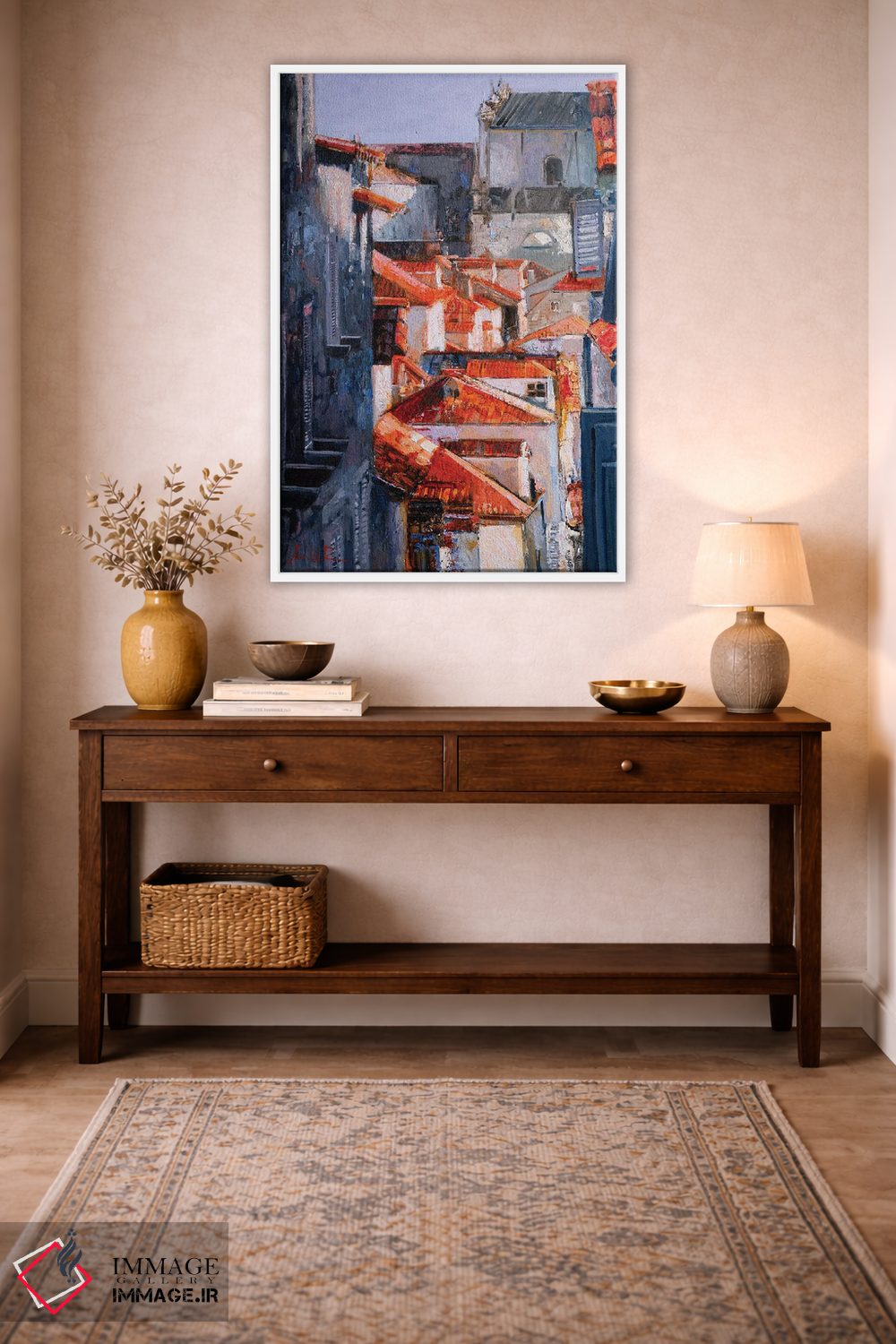 این اثرِ «خانلار اسداللهیف» با رویکرد هنری، این اثر را به شکل مرتب و قابل چیدمان ارائه میکند؛ مناسبِ بالای کنسول و راهروهای شیک.
