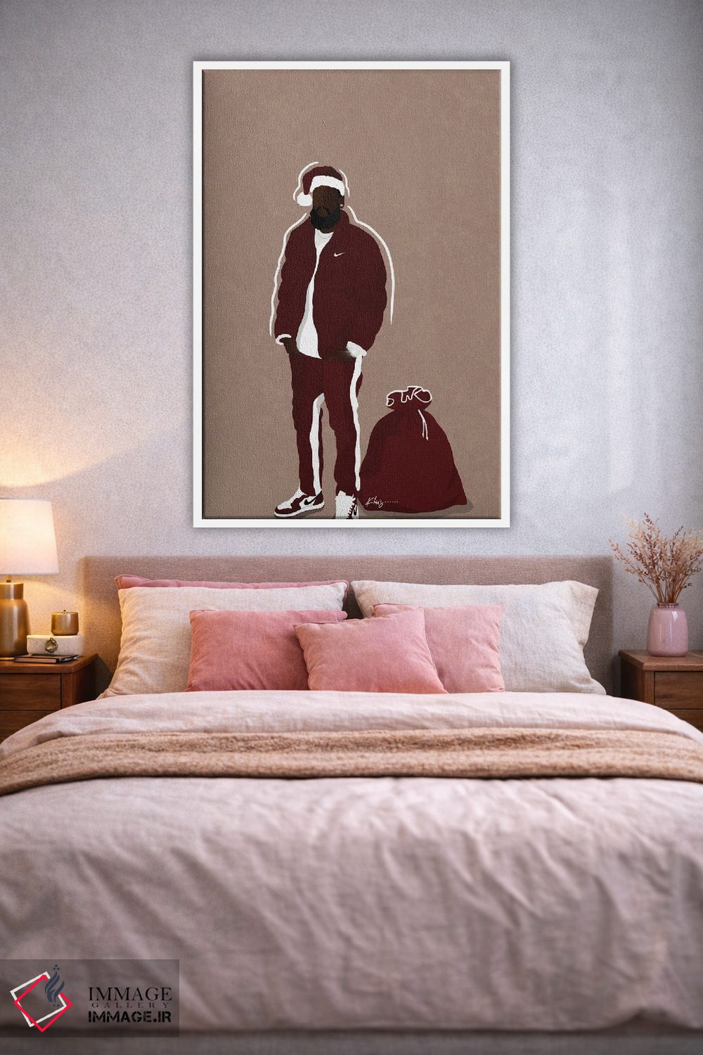 براساس پالت گرم اثر، قاب بلوط روشن (چوبی) پیشنهاد اول است و استخوانی ملایم مکمل. برای سفارشهای پروژهای با ابعاد و قابهای اختصاصی با ایماژ در تماس باشید.