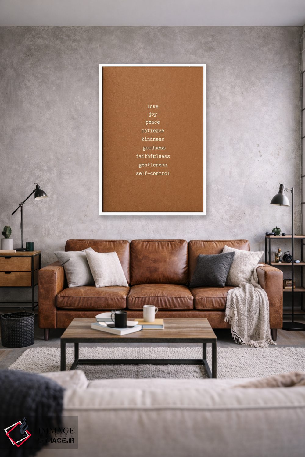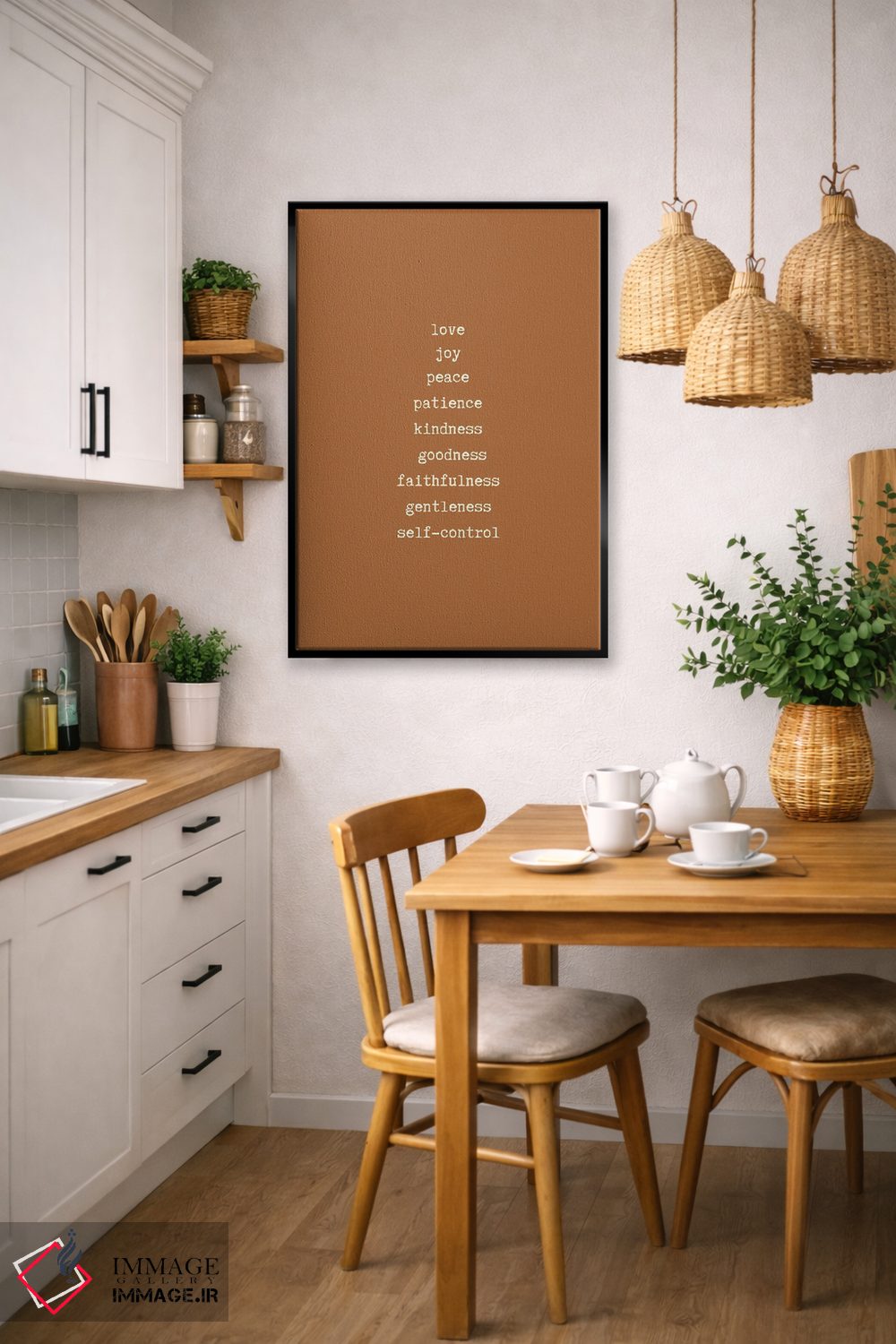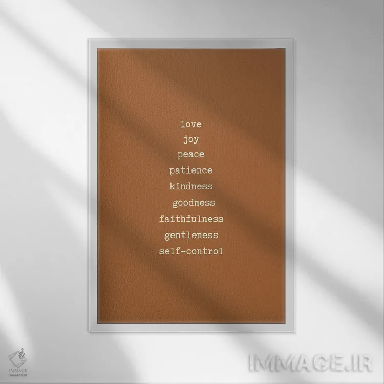 اگر دکور شما بر پایهی متن و تایپ است، «غلاطیان ۵: ۲۲ (آیه انجیل)» اثرِ «خارین هینز» با سبک پرداختِ هنری انتخابی تمیز و کاربردی است.