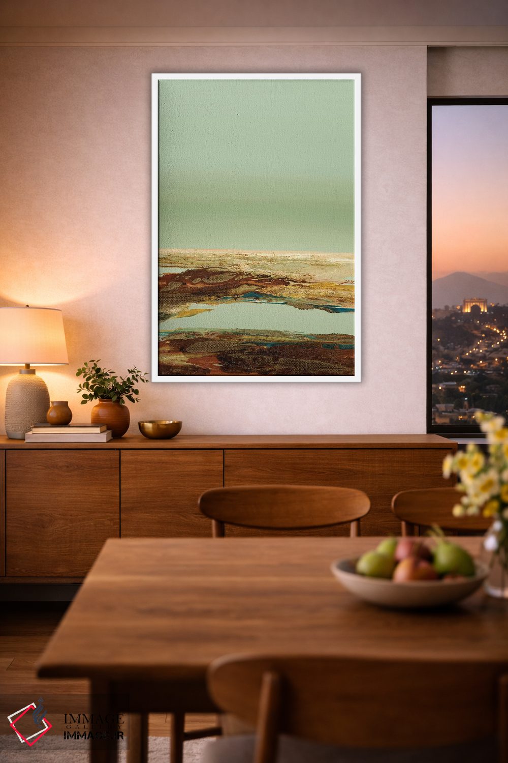 براساس پالت گرم اثر، قاب تیک گرم (چوبی) پیشنهاد اول است و مشکی مات (فریم متوسط) مکمل. برای سفارشهای پروژهای با ابعاد و قابهای اختصاصی با ایماژ در تماس باشید.