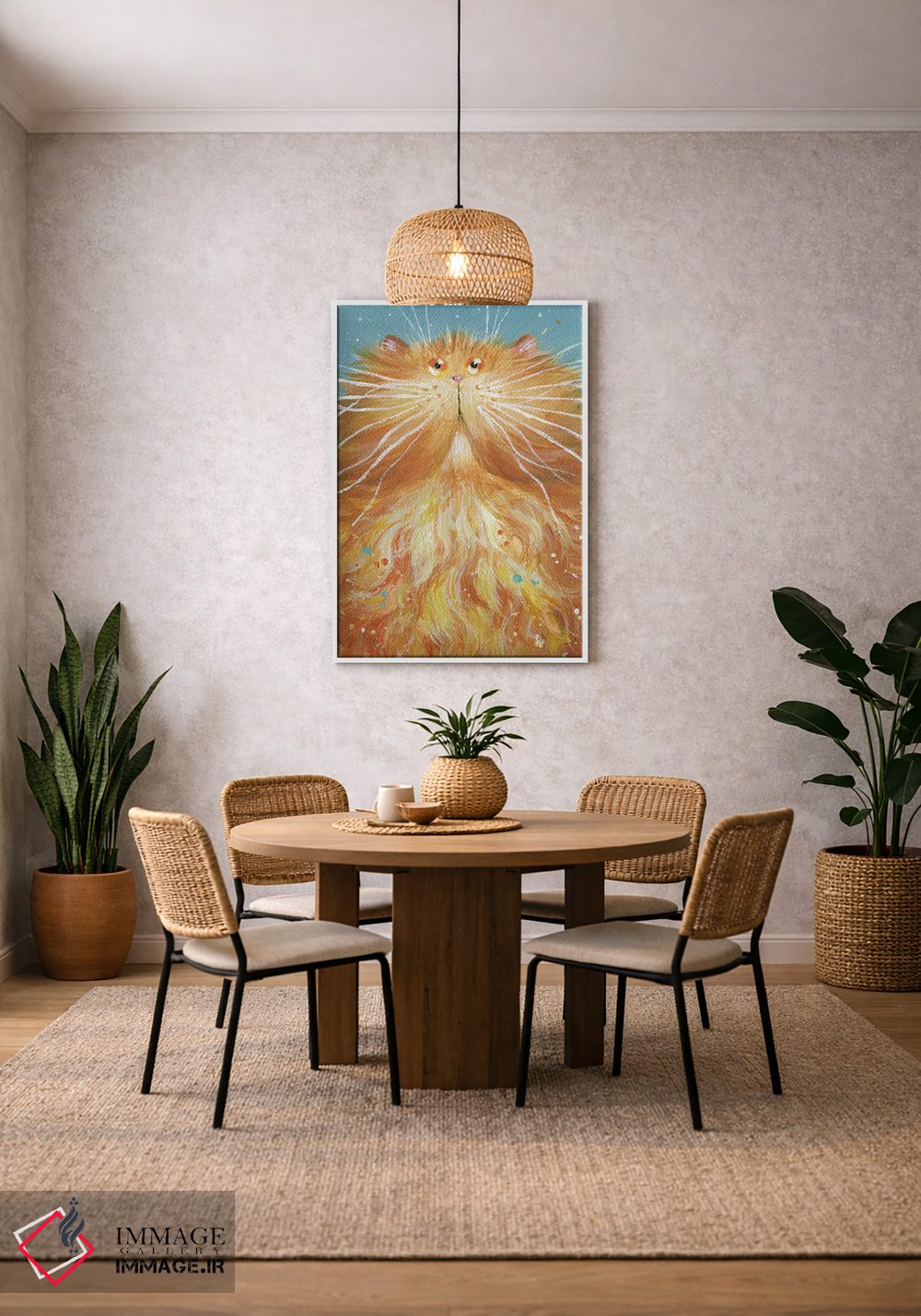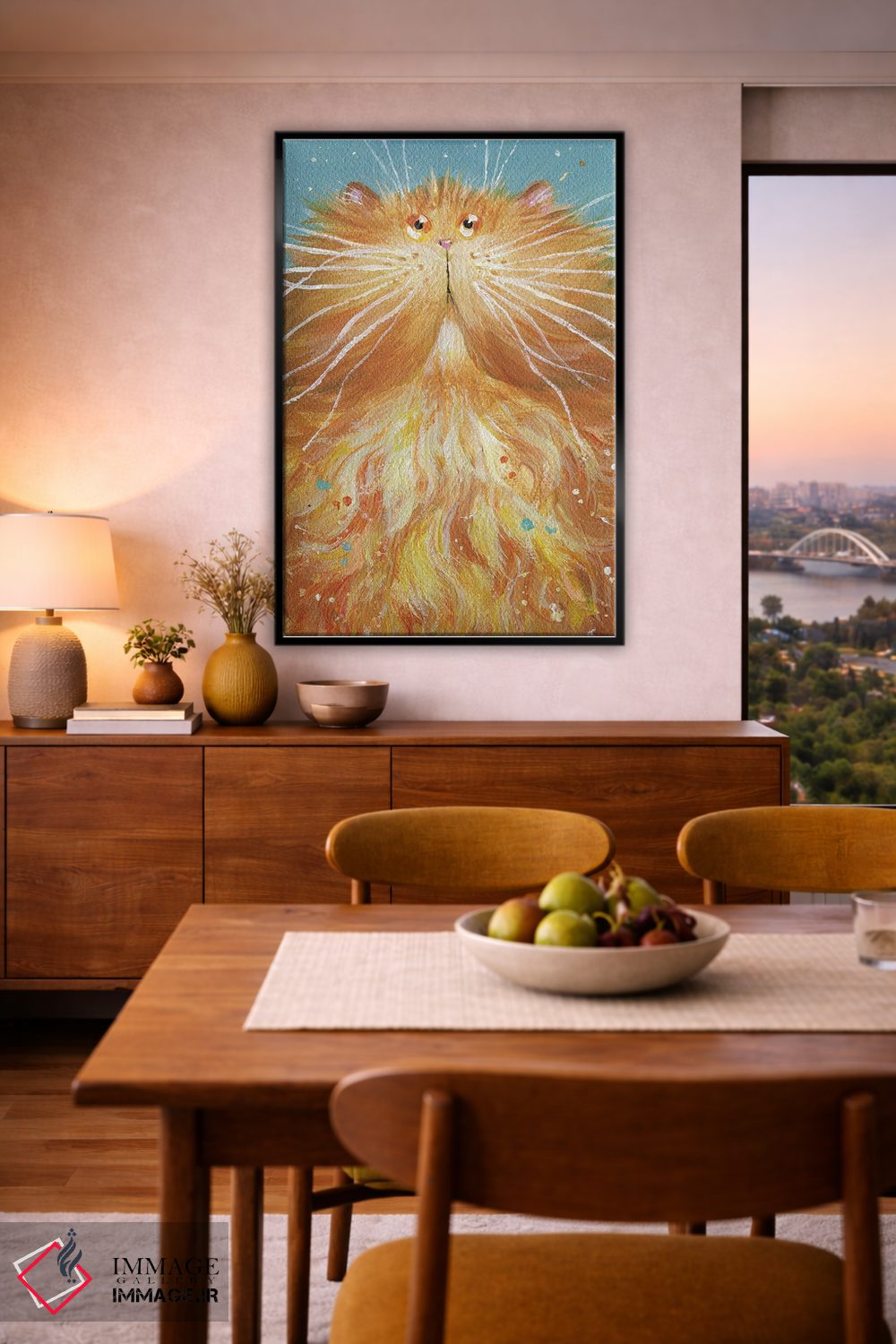 براساس پالت ترکیبی اثر، قاب تیک گرم (چوبی) پیشنهاد اول است و مشکی مات (فریم متوسط) مکمل. برای سفارشهای پروژهای با ابعاد و قابهای اختصاصی با ایماژ در تماس باشید.