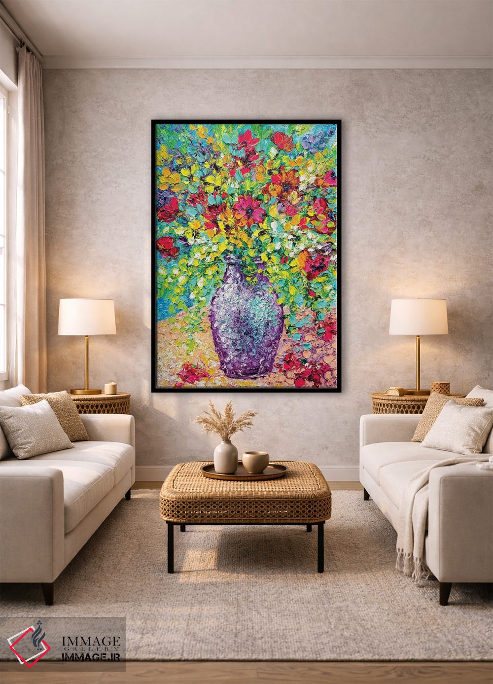 بوم گالری ایماژ نسخهی دکوراتیوِ سطحبالا از یک اثر هنری است؛ روی کنواس بدون اسید با بافت ظریف و یکنواخت با چاپ هنریِ دقیق (Giclée) برای گذارهای نرمتر و وضوح بالاتر و رنگدانههای آرشیوی Epson UltraChrome HDR؛ نتیجه، تصویرسازیِ دقیقتر و حس ارائهی گالریوار است. هر تابلو بهصورت سفارشی روی چهارچوب کشیده میشود و با یراق مناسب آمادهی نصب است.