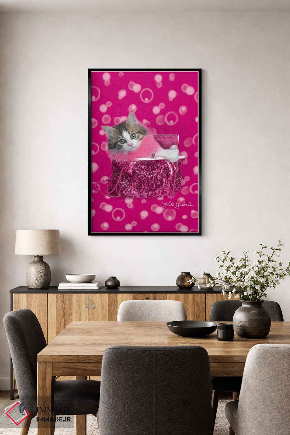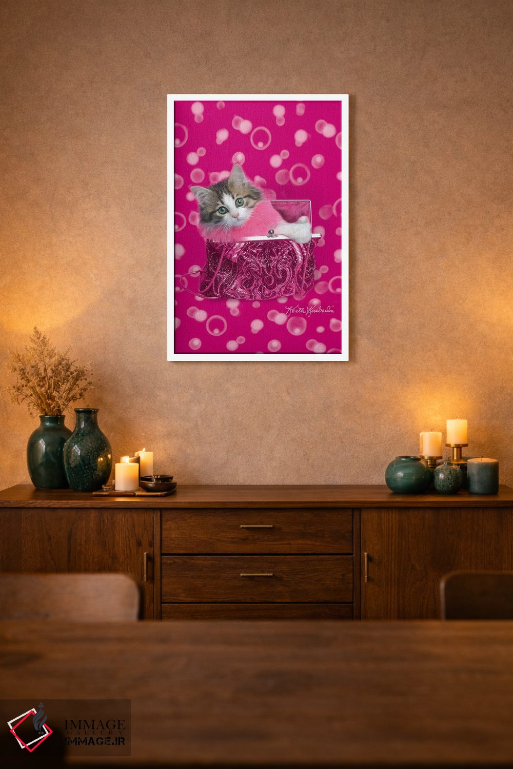 برای انتخاب قابهای متنوعتر، تیم ایماژ کنار شماست برای اینکه بهترین گزینه را پیدا کنید. تا اثر در فضا «مدرن و ساده» دیده شود، نور موضعی ملایم نتیجه را بهتر نشان میدهد و جلوهی گالریوار بیشتری میدهد.