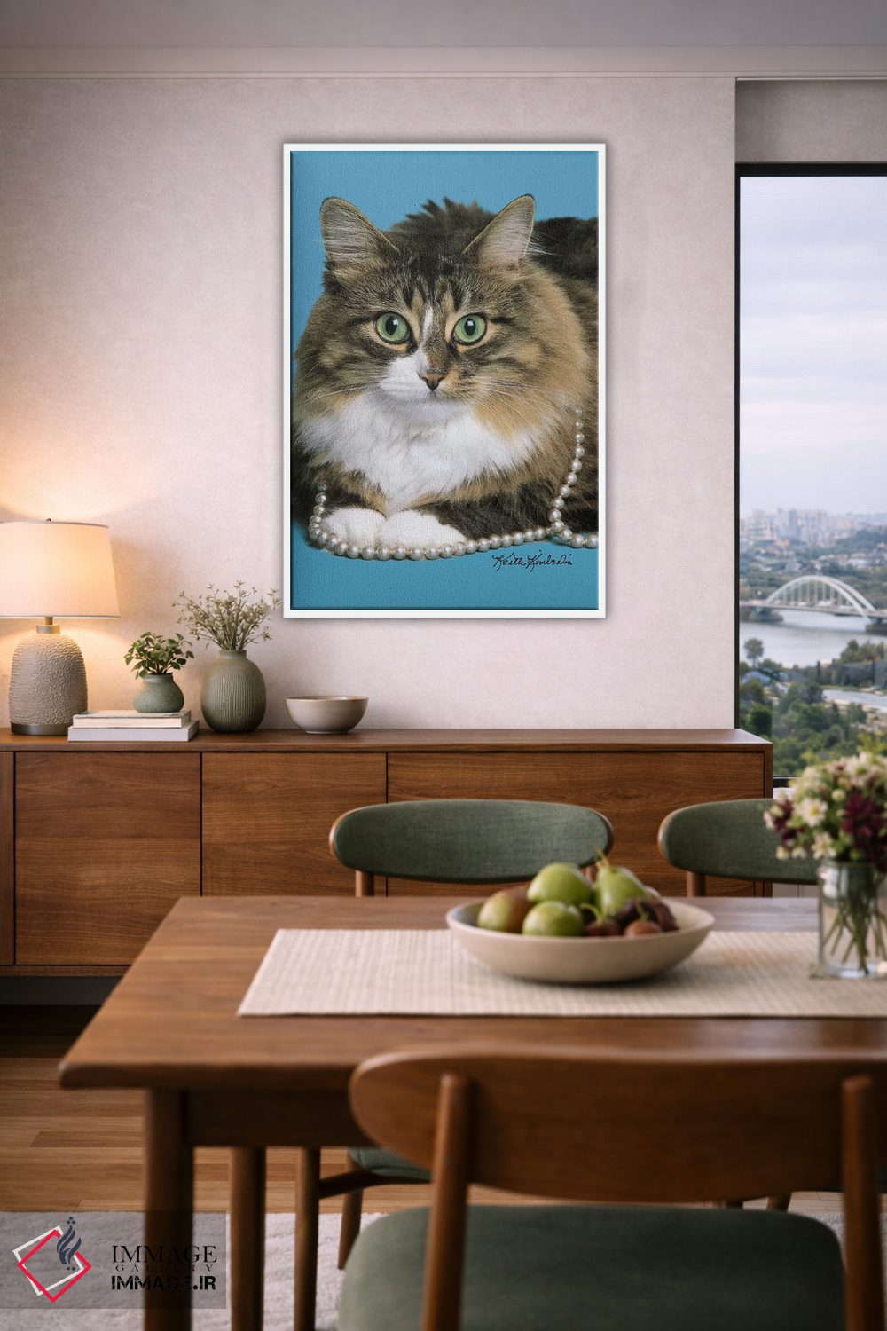 «مرواریدهایم را محکم گرفتهام» اثرِ «کیت کیمبرلین» میتواند در کنار رنگهای خنثی، تضاد دلچسبی بسازد؛ برای دکورهای مدرن و مینیمال پیشنهاد میشود. هر بار نگاهش میکنید، یک جزئیات تازه به چشم میآید.