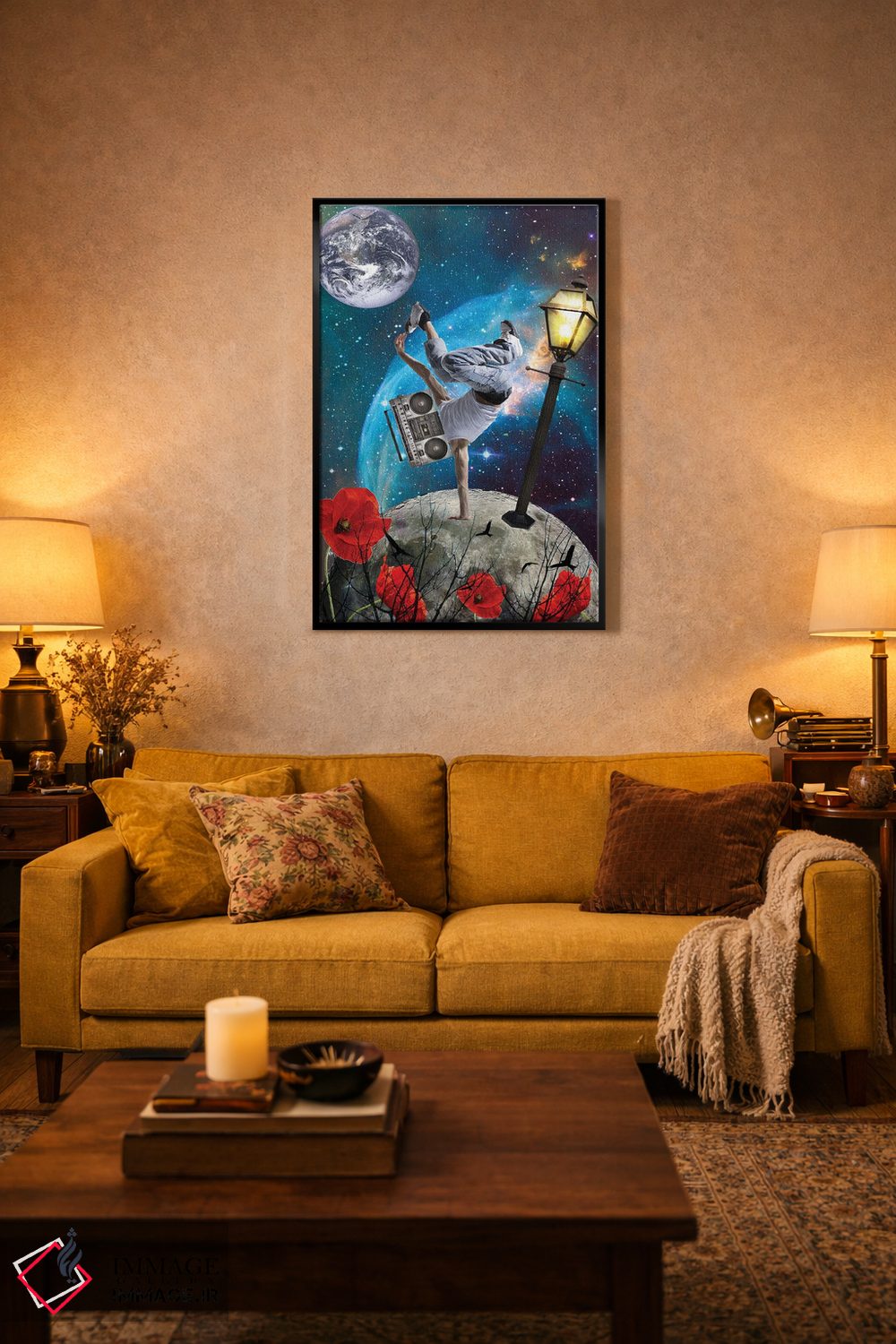 بوم گالری ایماژ نسخهی چیدماناتیوِ سطحبالا از یک اثر هنری است؛ روی کنواس سفیدِ یکدست و بدون اسید با اجرای چاپ هنریِ دقیق به روش جیکلی (Giclée) با جوهرهای آرشیویِ حرفهای برای لایههای رنگی خواناتر؛ در گذارهای رنگی، لطافت بیشتری حس میشود. تابلو پس از آمادهسازی روی کلاف کشیده میشود و نصب آن ساده و بیدردسر است.