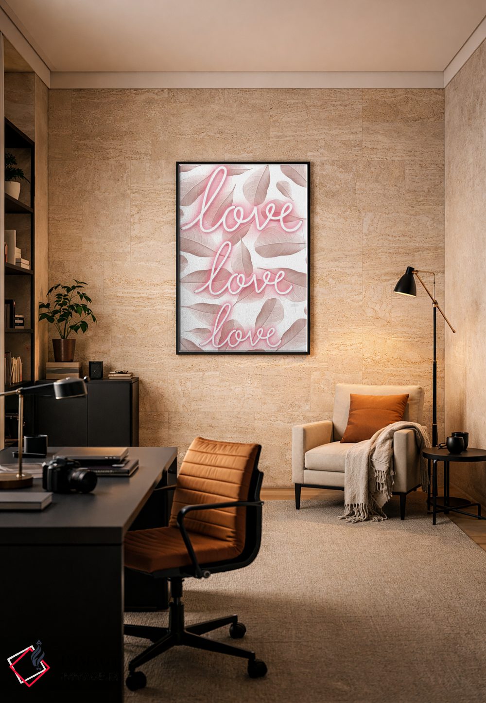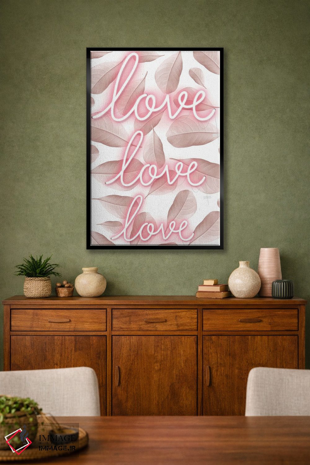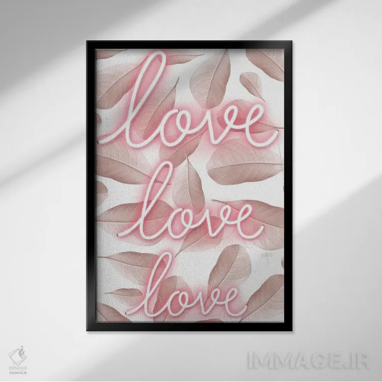 تابلو دکوراتیو نور نئون صورتی عشق اثر کیکی سی لندن - نمای قاب‌دار مشکی