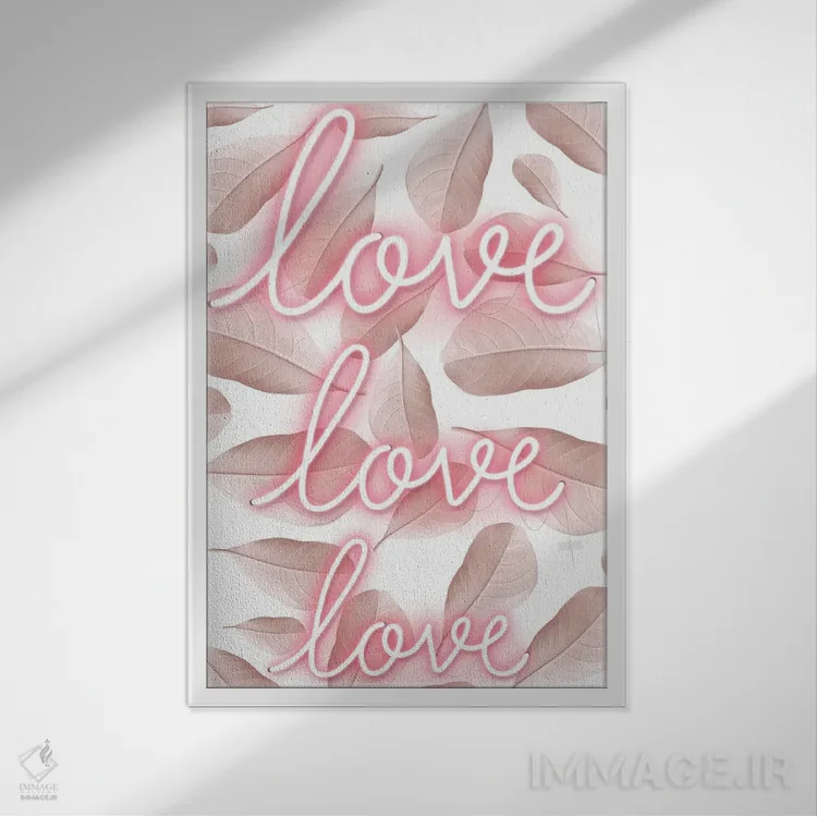 تابلو دکوراتیو نور نئون صورتی عشق اثر کیکی سی لندن - نمای قاب‌دار سفید