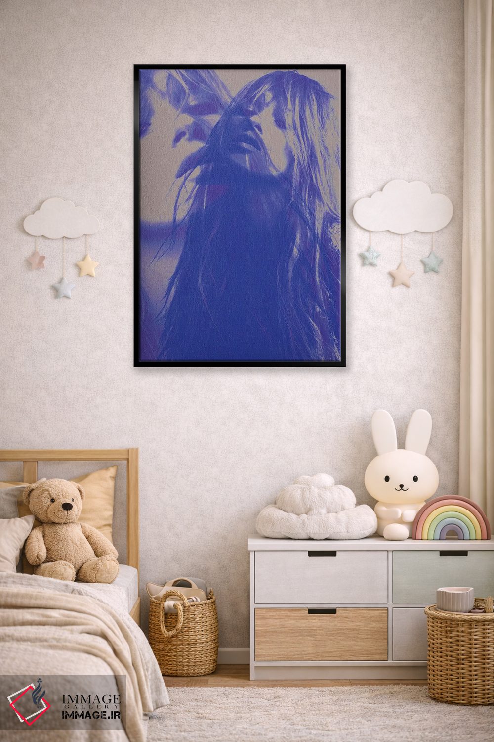 بوم گالری ایماژ نسخهی دکوراتیوِ سطحبالا از یک اثر هنری است؛ روی کنواس سفیدِ یکدست و بدون اسید با فرآیند چاپ حرفهای جیکلی (Giclée) و کنترل دقیق تونها با رنگدانههای آرشیوی و سیستم رنگ دقیق؛ رنگها روی دیوار متعادلتر و سایهها جزئیتر دیده میشوند. کلافکشی مرتب و یراق نصب استاندارد، تجربهی نصب را ساده میکند.