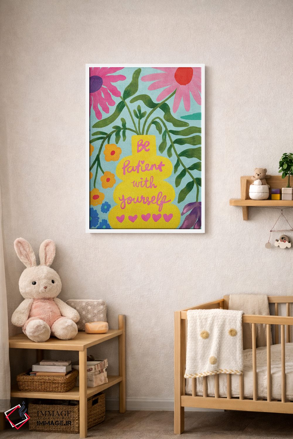براساس پالت ترکیبی اثر، قاب تیک گرم (چوبی) پیشنهاد اول است و مشکی مات (فریم متوسط) مکمل. برای سفارشهای پروژهای با ابعاد و قابهای اختصاصی با ایماژ در تماس باشید.