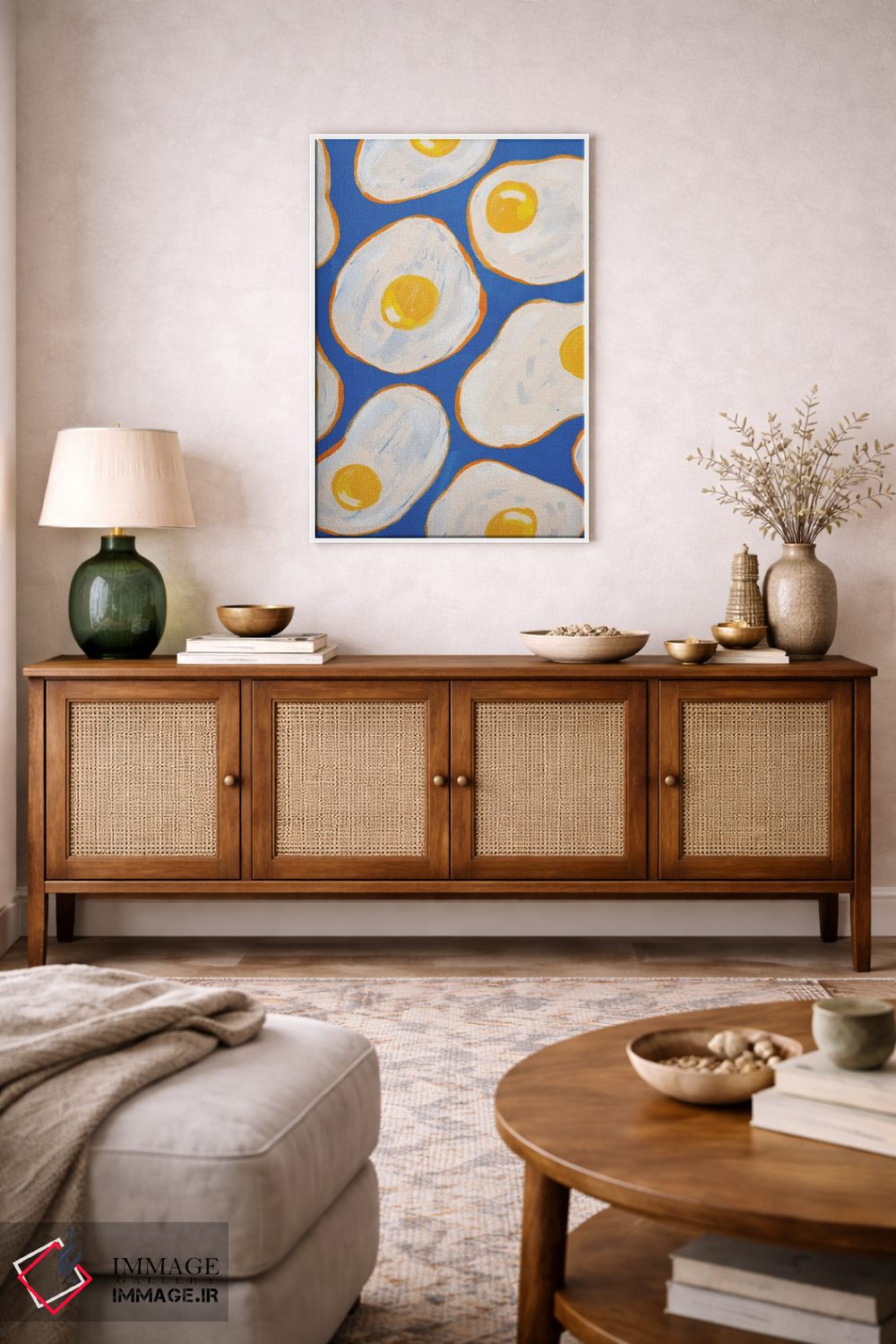 تابلو دکوراتیو تخم مرغ نیمرو آبی اثر کارتیکا پارامیتا