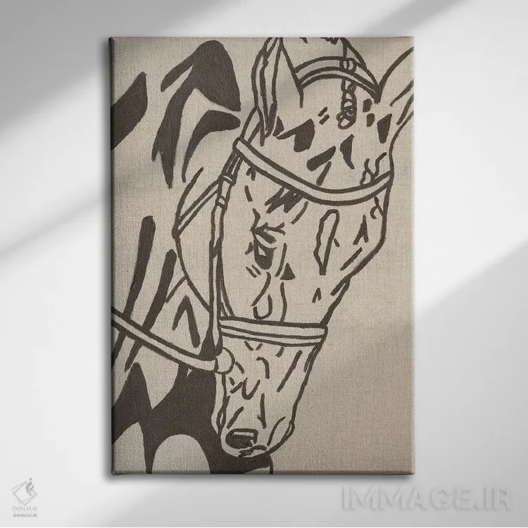 تابلو مینیمال اسب طراحی مزرعه اثر کاتلین برایان - نمای نزدیک بافت بوم
