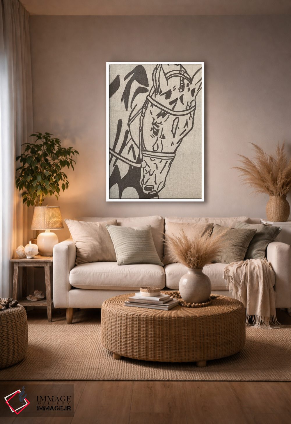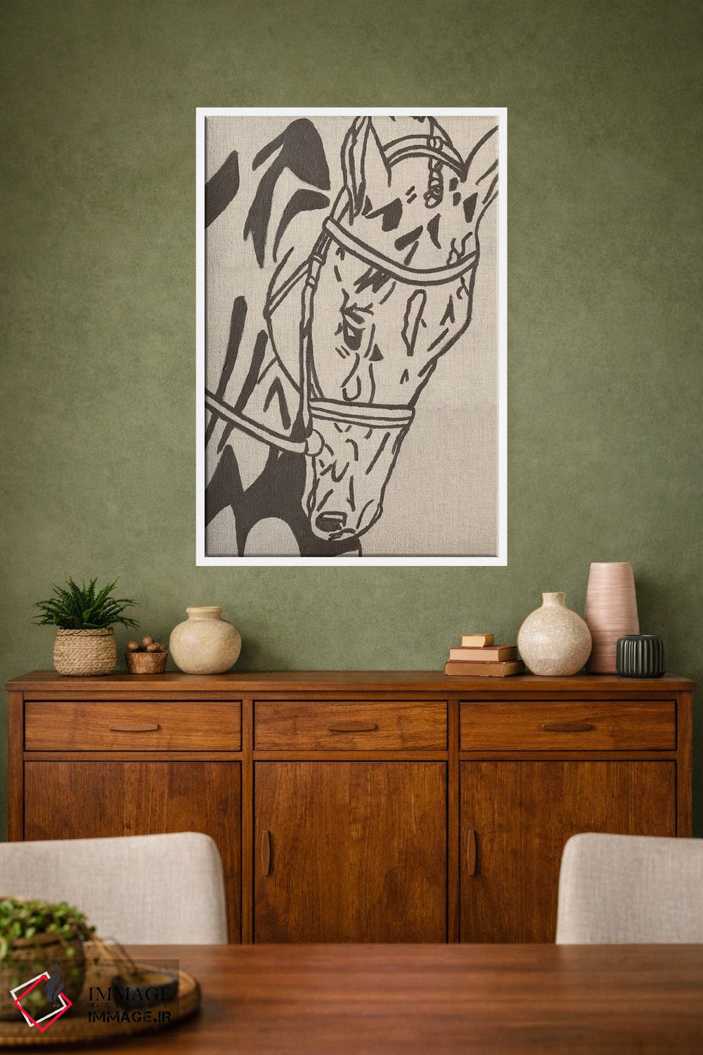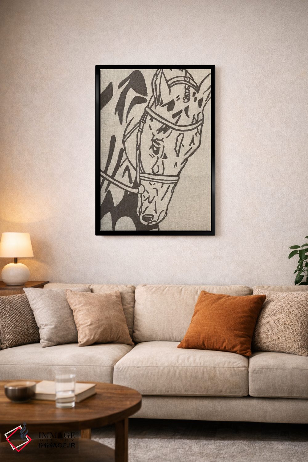 تابلو مینیمال اسب طراحی مزرعه اثر کاتلین برایان - نمای روبه‌رو روی دیوار