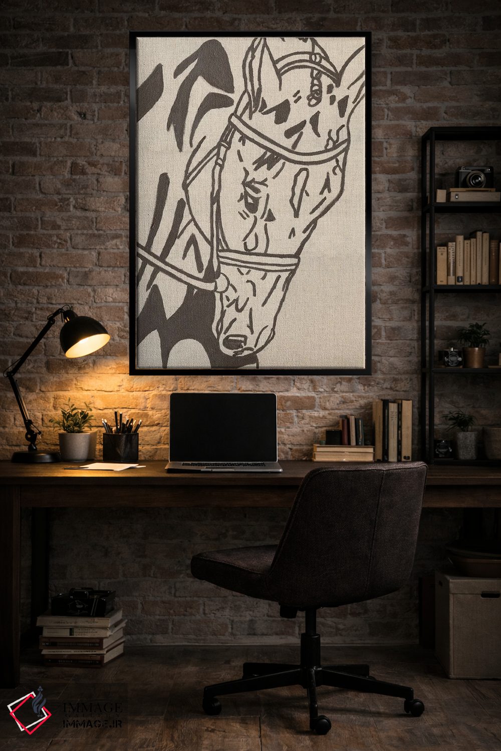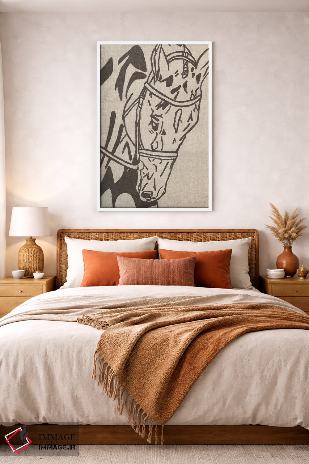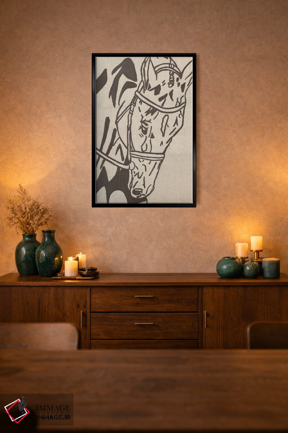 تابلو مینیمال اسب طراحی مزرعه اثر کاتلین برایان - نمای روبه‌رو روی دیوار