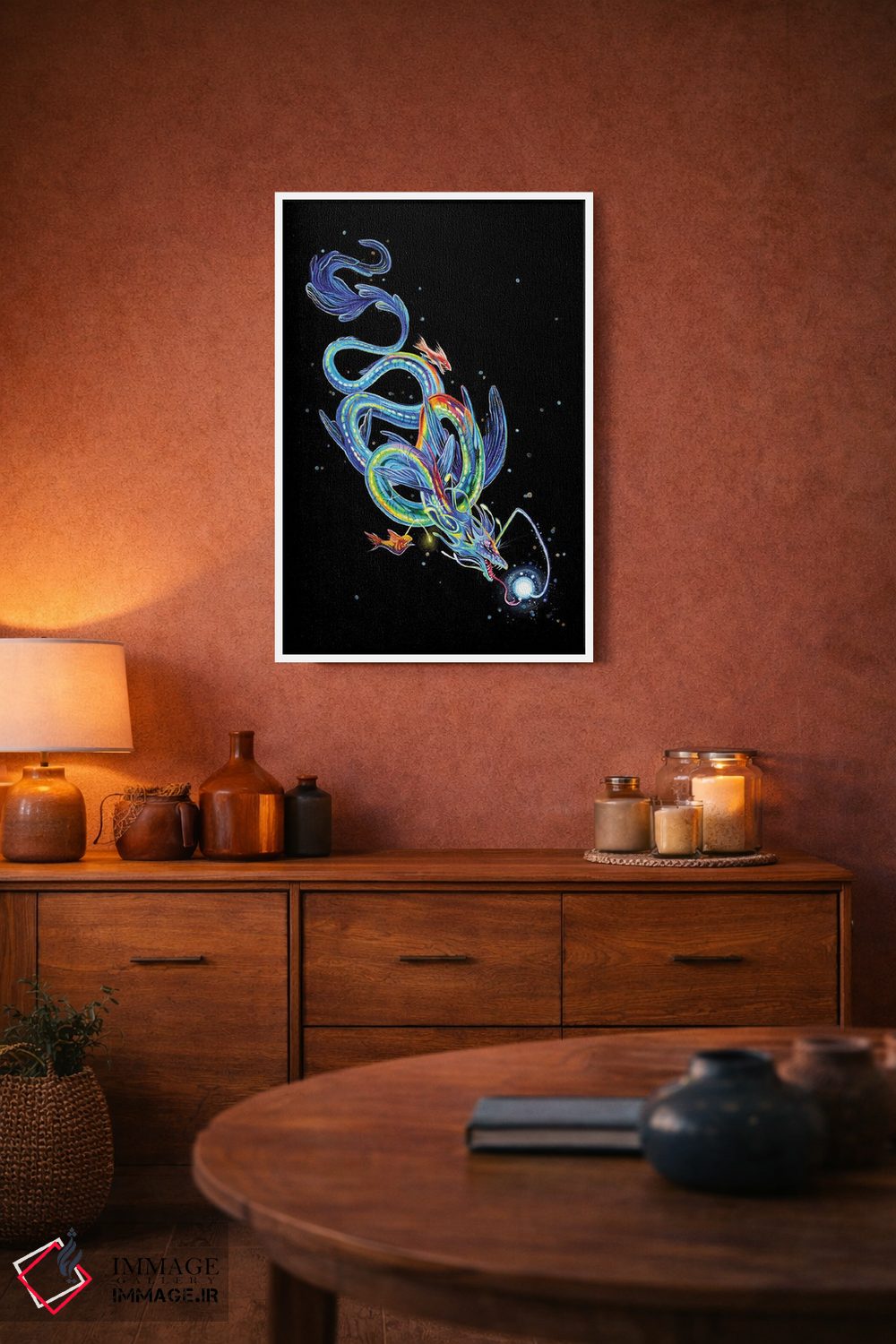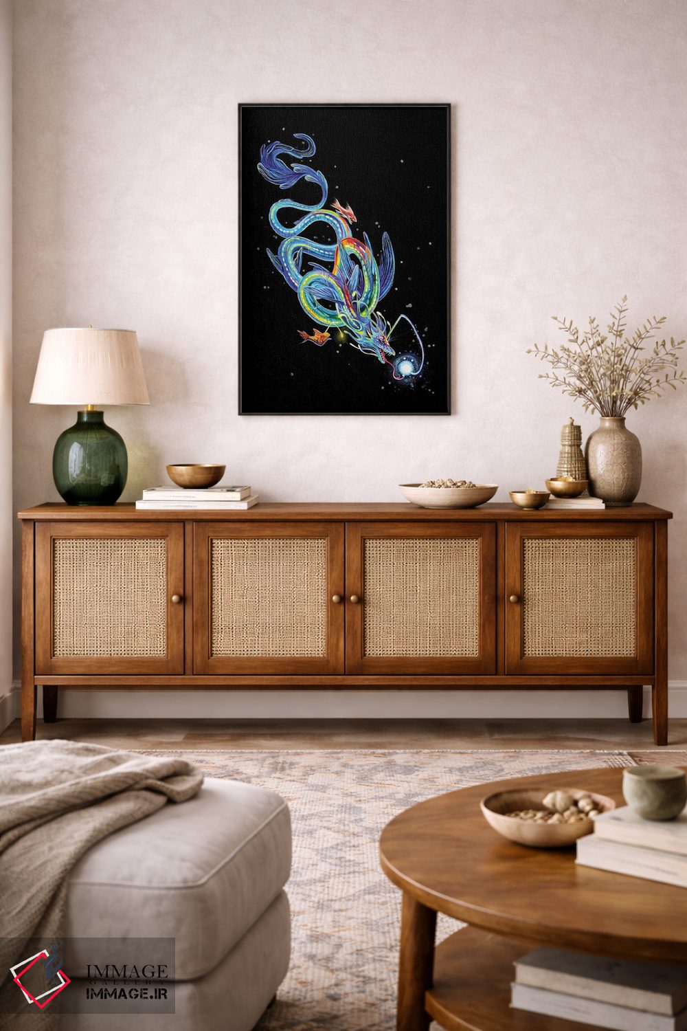 «اژدهای شبتاب (زیستتاب)» اثرِ «کتی لیپسکامب» میتواند به دیوار، انرژیِ نرم و زنده بدهد؛ برای دکورهای مدرن و مینیمال پیشنهاد میشود. حسش صمیمی است، اما کیفیتش جدی و خوشپرداخت.