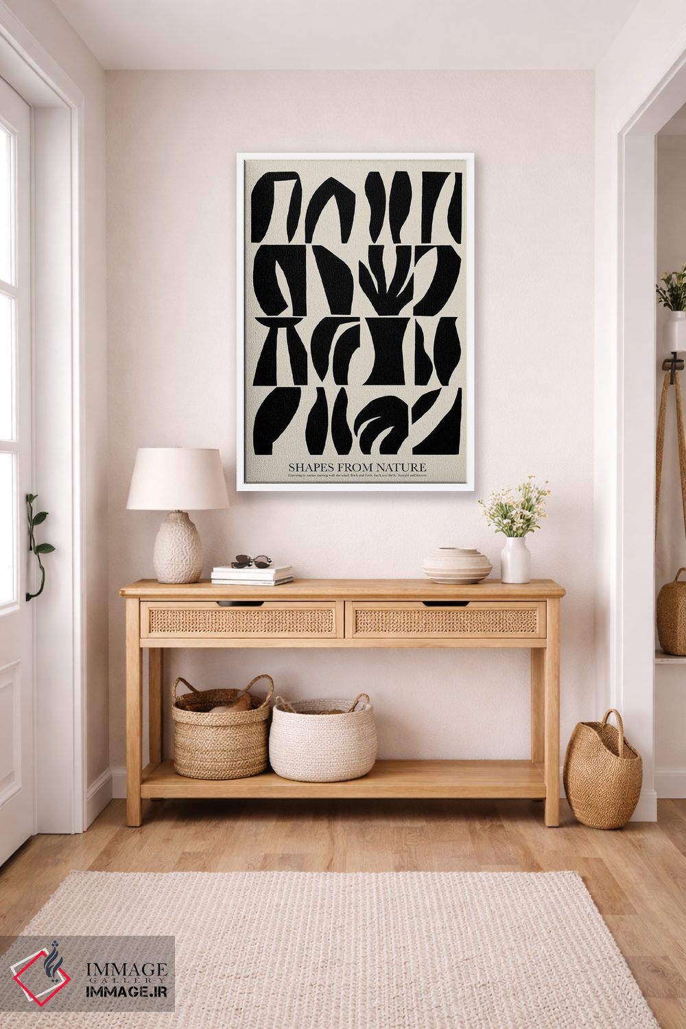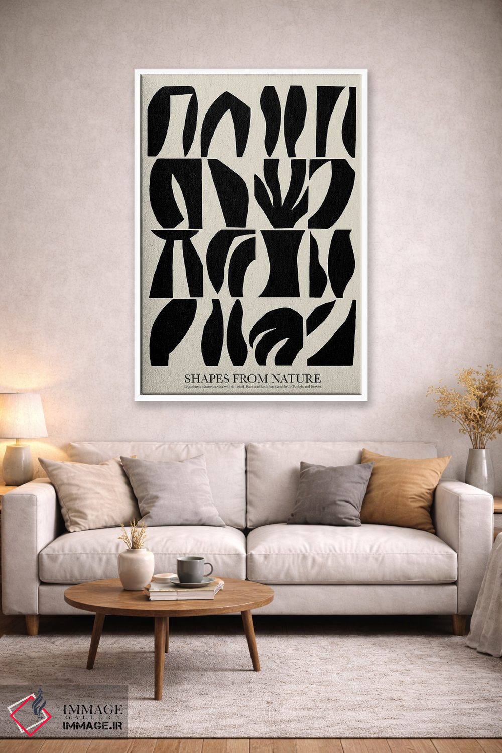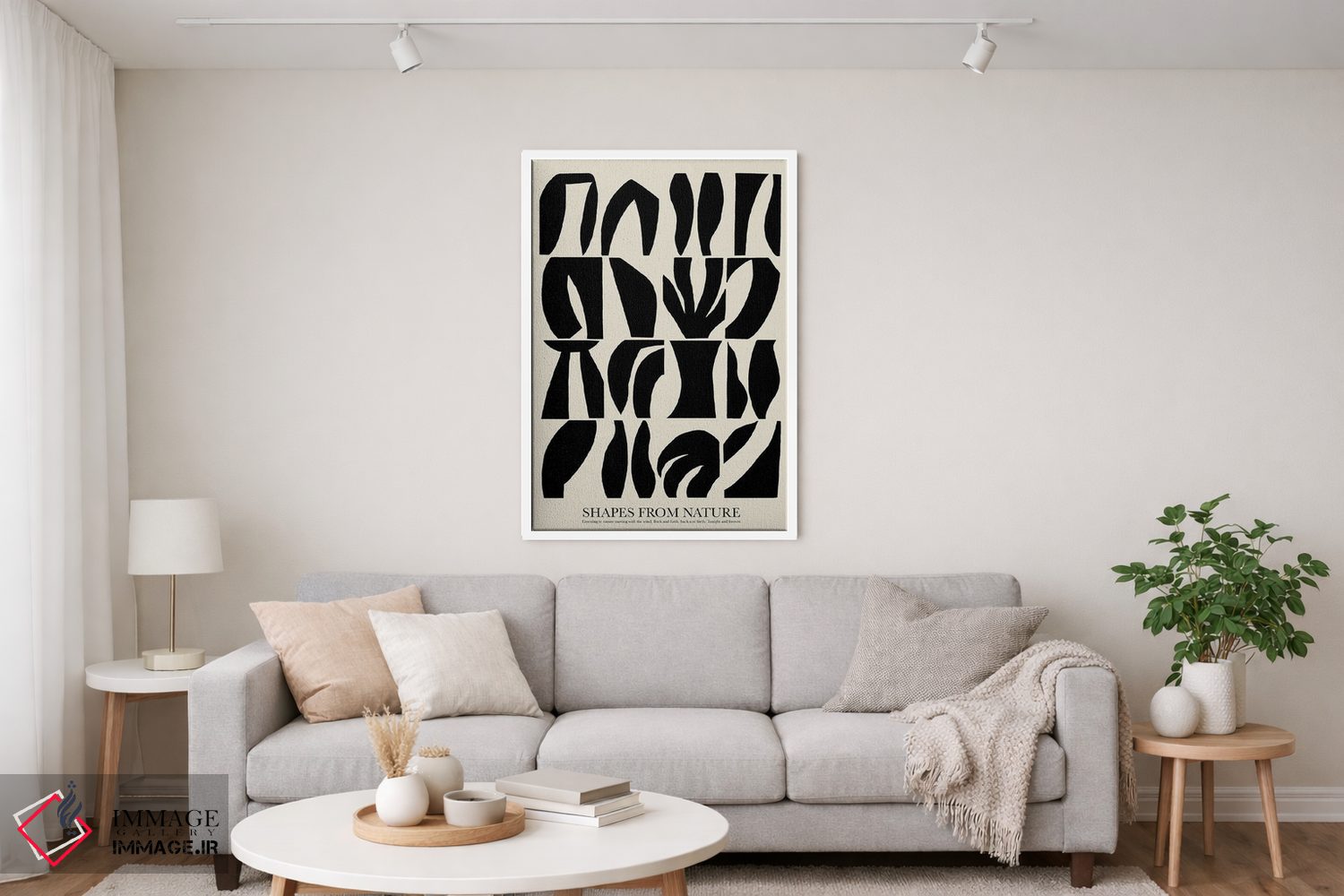 براساس پالت خنثی اثر، قاب مشکی مات (فریم باریک) پیشنهاد اول است و سفید مات (فریم باریک) مکمل. برای سفارشهای پروژهای با ابعاد و قابهای اختصاصی با ایماژ در تماس باشید.