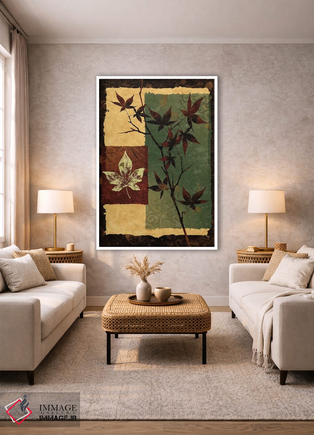 بوم گالری ایماژ نسخهی چیدماناتیوِ حرفهای از یک اثر هنری است؛ روی کنواس بدون اسید با بافت ظریف و یکنواخت با چاپ هنری به استاندارد جیکلی (Giclée) با رنگهای آرشیوی UltraChrome HDR برای طبیعیتر دیده شدن رنگها روی دیوار؛ این ترکیب باعث میشود گذارهای رنگی نرمتر و بافتها خواناتر شوند.