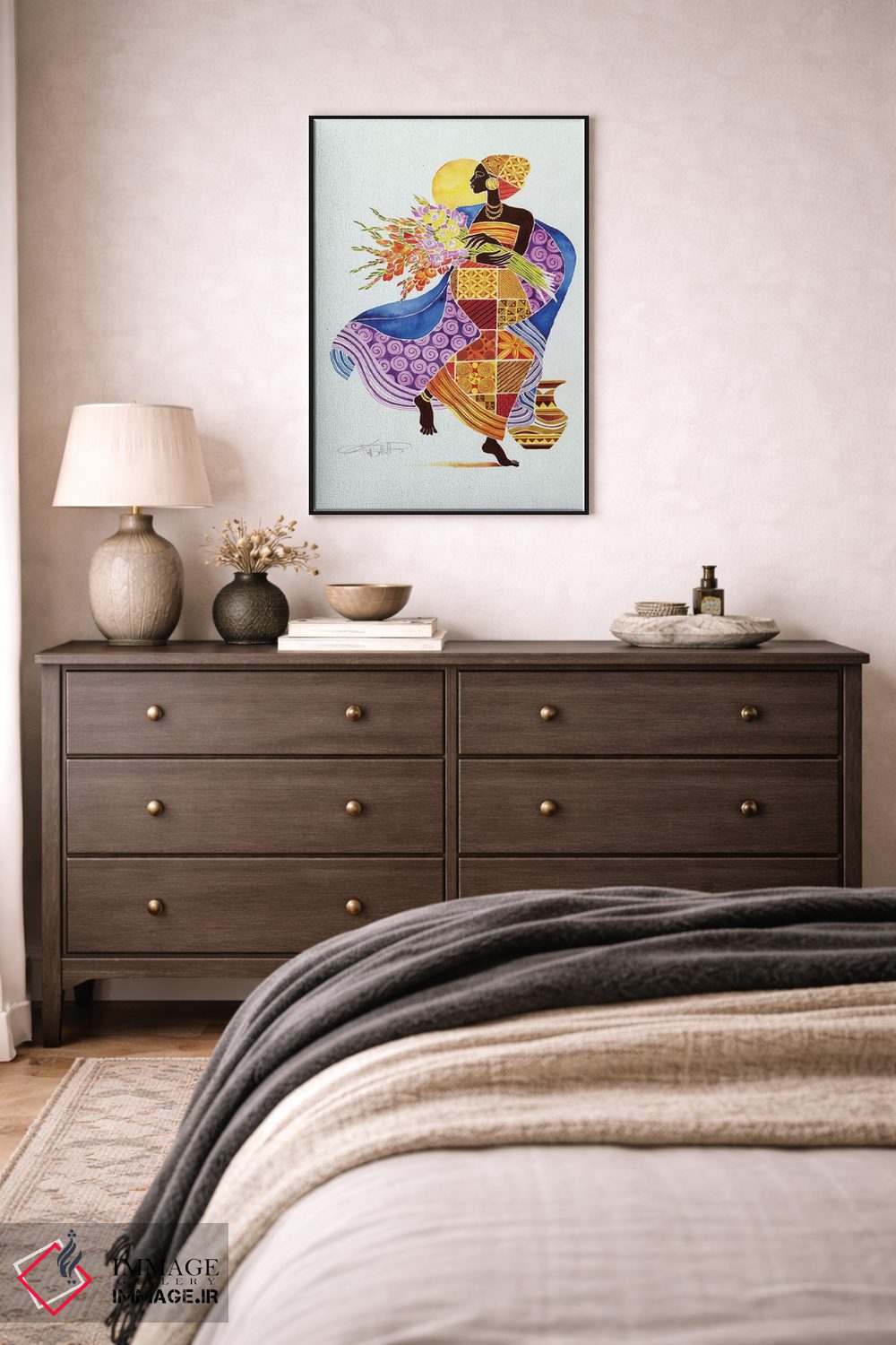 براساس پالت ترکیبی اثر، قاب تیک گرم (چوبی) پیشنهاد اول است و مشکی مات (فریم متوسط) مکمل. برای سفارشهای پروژهای با ابعاد و قابهای اختصاصی با ایماژ در تماس باشید.