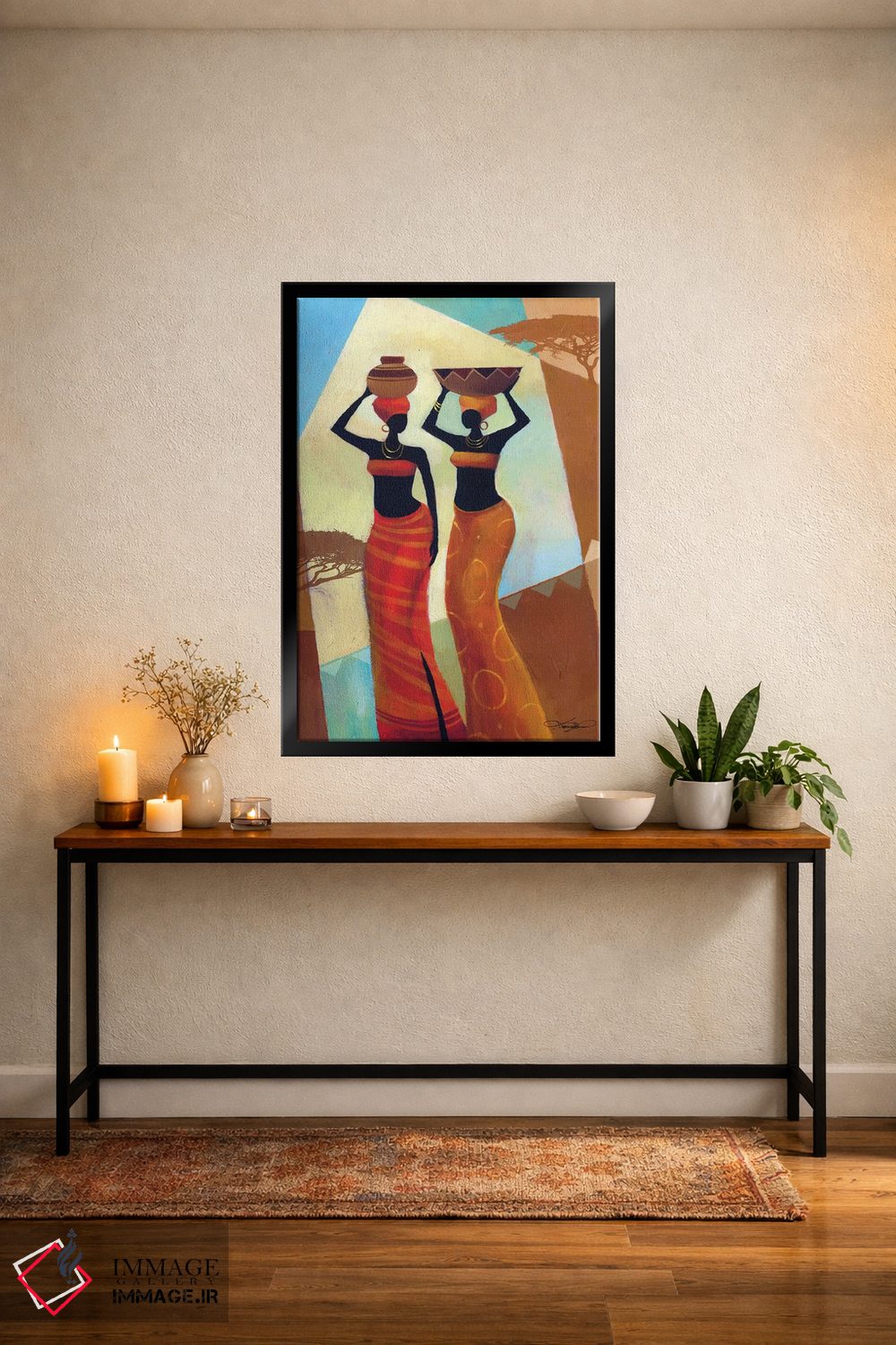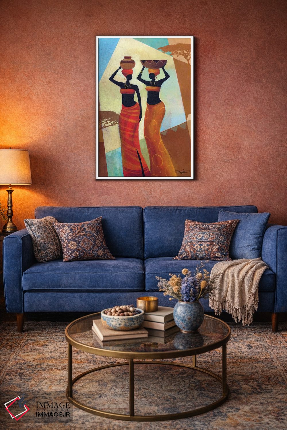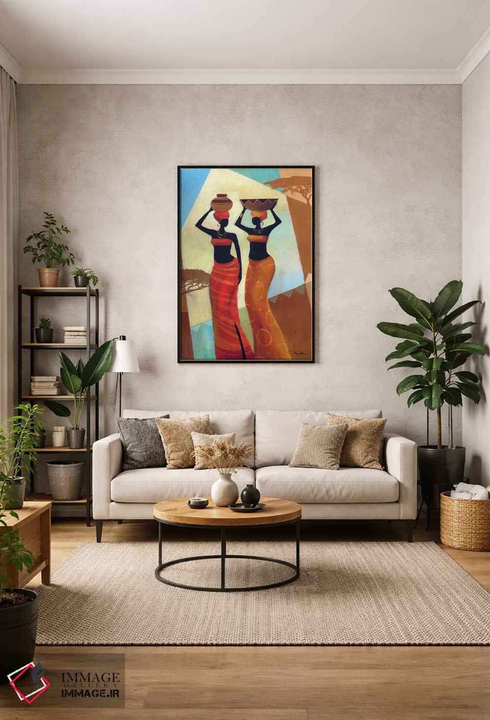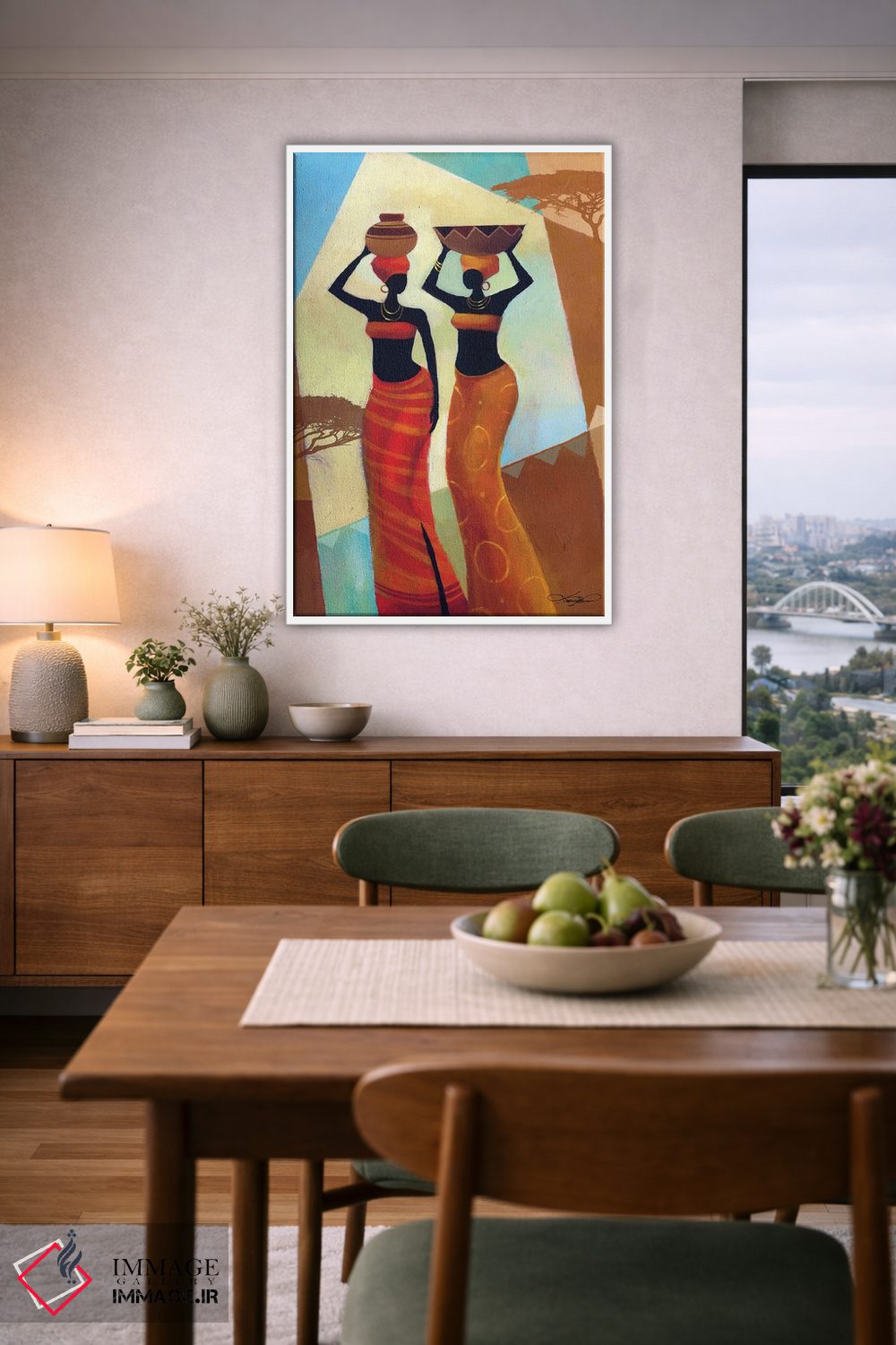 براساس پالت ترکیبی اثر، قاب تیک گرم (چوبی) پیشنهاد اول است و مشکی مات (فریم متوسط) مکمل. برای سفارشهای پروژهای با ابعاد و قابهای اختصاصی با ایماژ در تماس باشید.