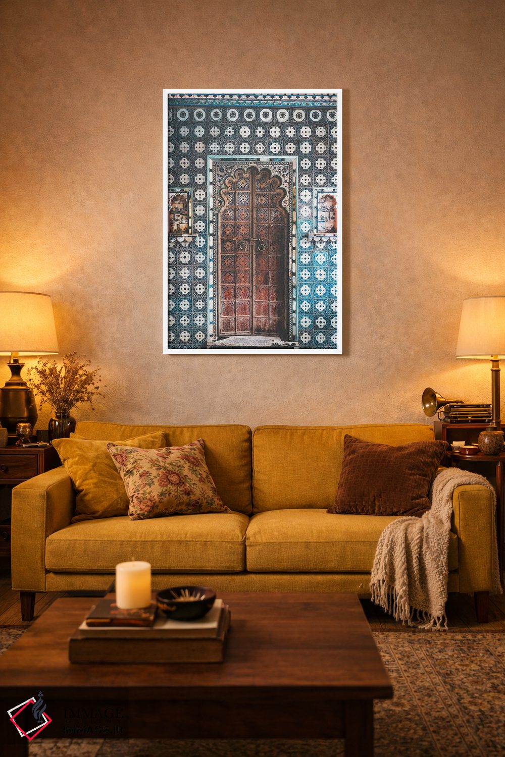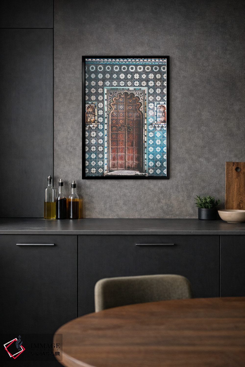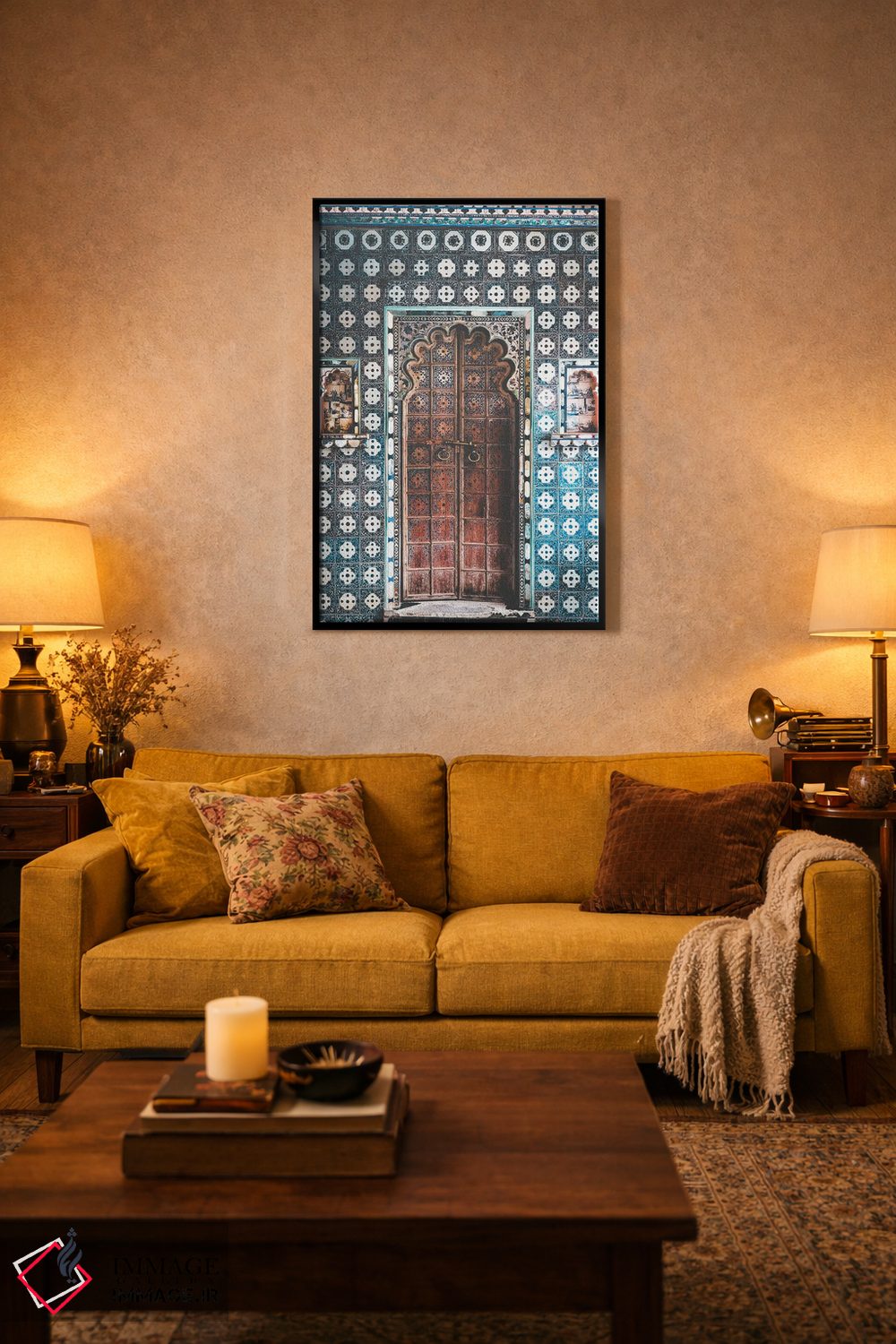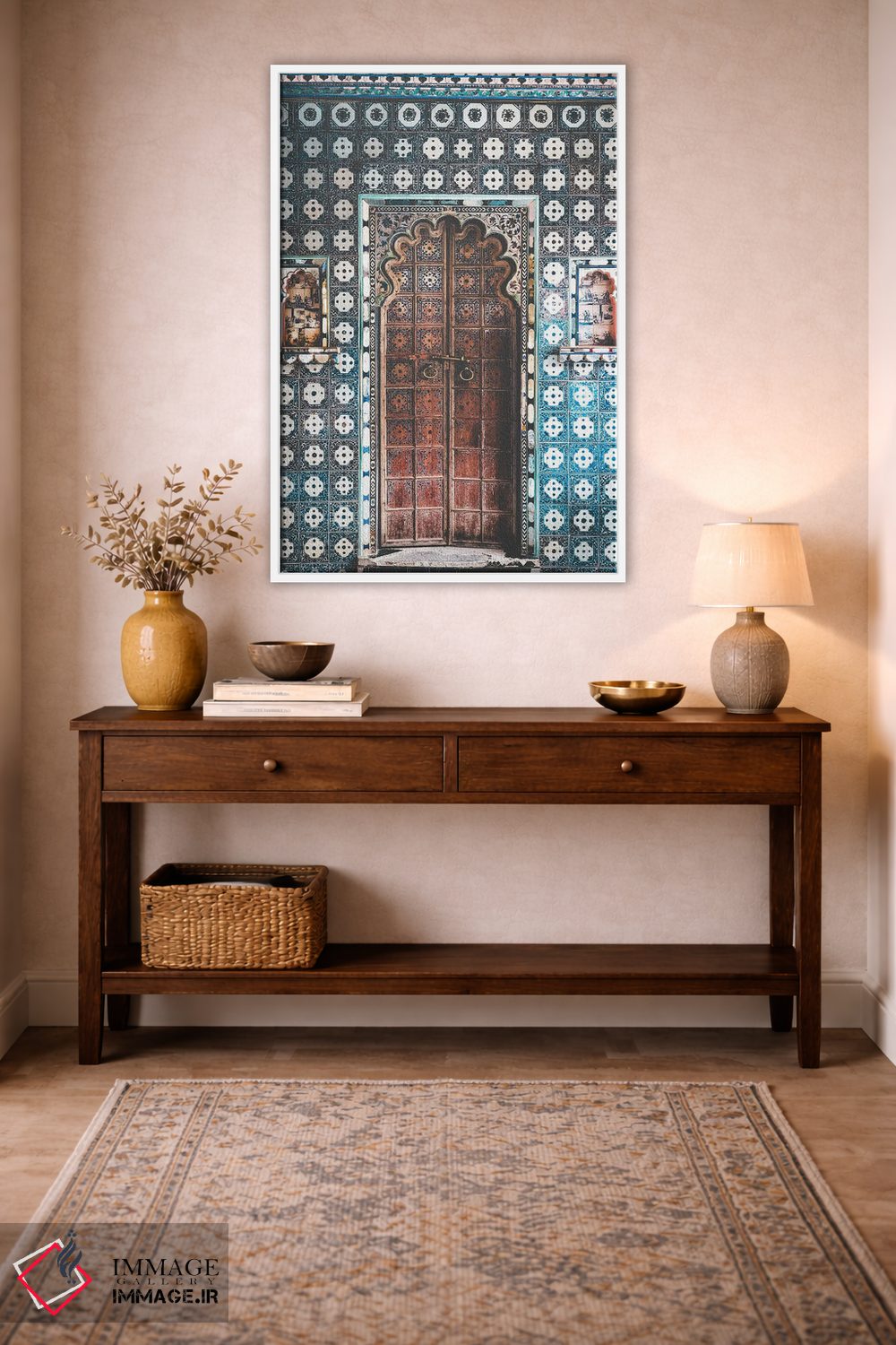 «درب هندی تزئینشده در پاندیچری (هند)» اثرِ «کارن منداو» بازیِ دقیقِ خط و هندسه است؛ به دیوار، ریتم معماری اضافه کند؛ برای استودیوهای طراحی انتخابی خوشسلیقه است. با قاب مشکی مات، جلوهٔ تمیزتری پیدا میکند.