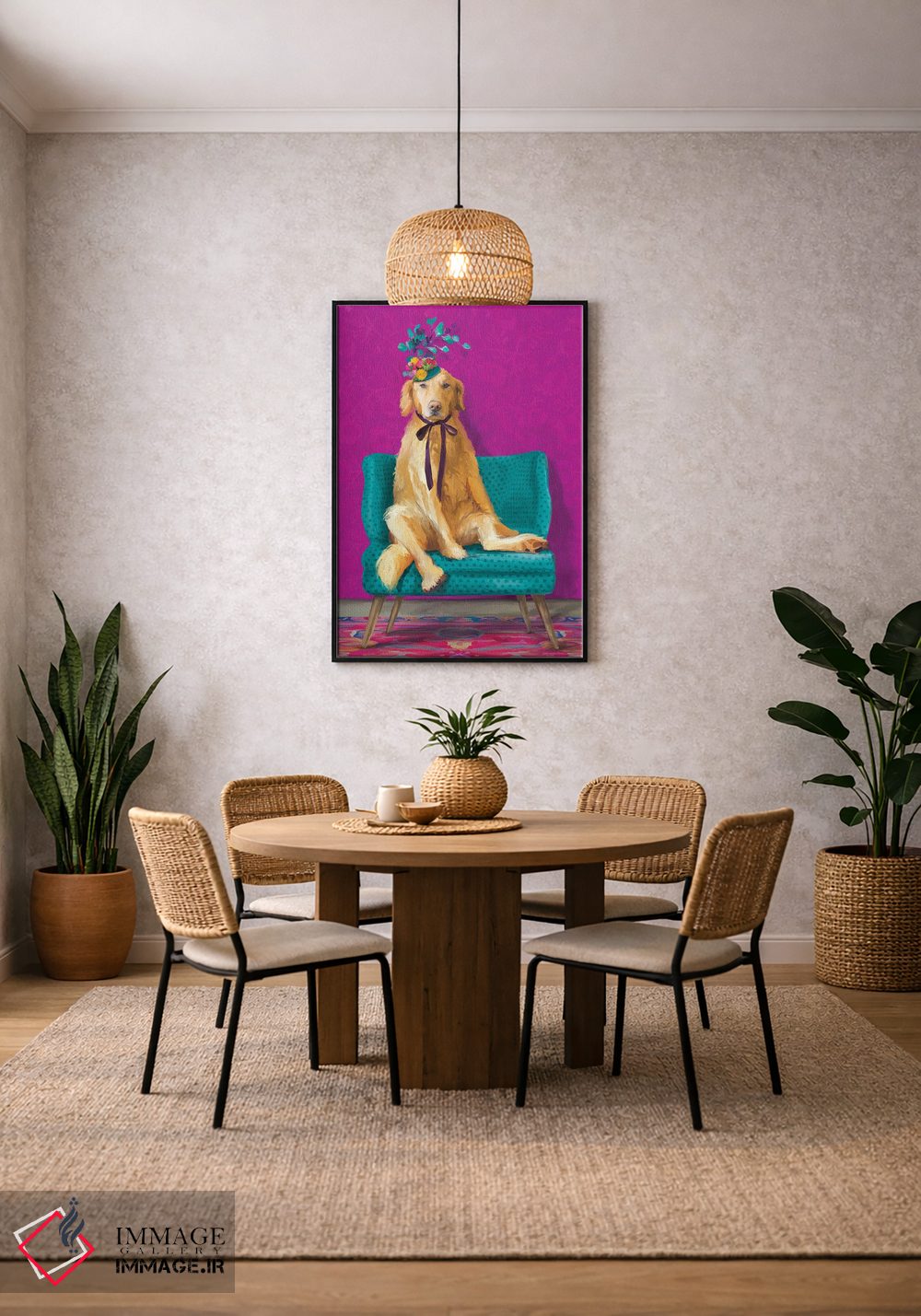 «دوشس» اثرِ «کندون کریشنز (شرکت/استودیو هنری)» میتواند گرما و شخصیت به فضا اضافه کند؛ برای دیوار کنار میز کار پیشنهاد میشود. با قاب چوبی یا مشکی، حس مرتبتری پیدا میکند.