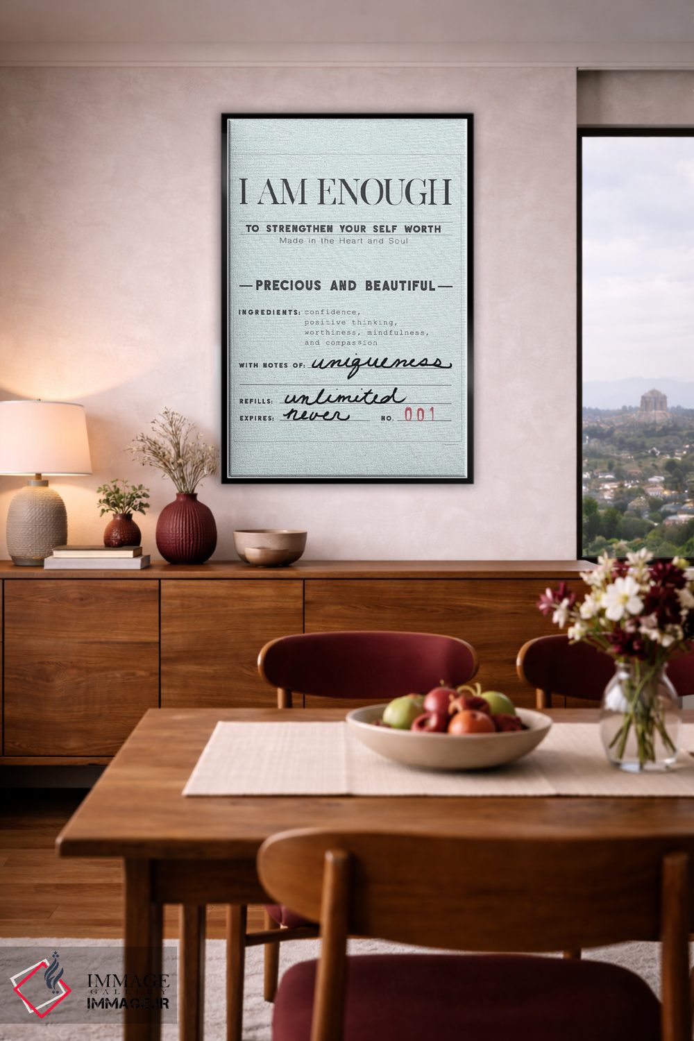 این اثر با حس این اثر و پرداختِ هنری، برای دکورهای روشن و مینیمال عالی جواب میدهد: «من کافی هستم» اثرِ «کندون کریشنز (شرکت/استودیو هنری)».