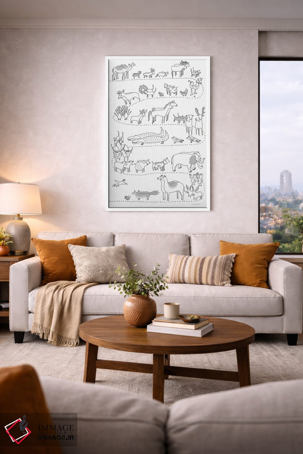 براساس پالت خنثی اثر، قاب مشکی مات (فریم باریک) پیشنهاد اول است و سفید مات (فریم باریک) مکمل. برای سفارشهای پروژهای با ابعاد و قابهای اختصاصی با ایماژ در تماس باشید.