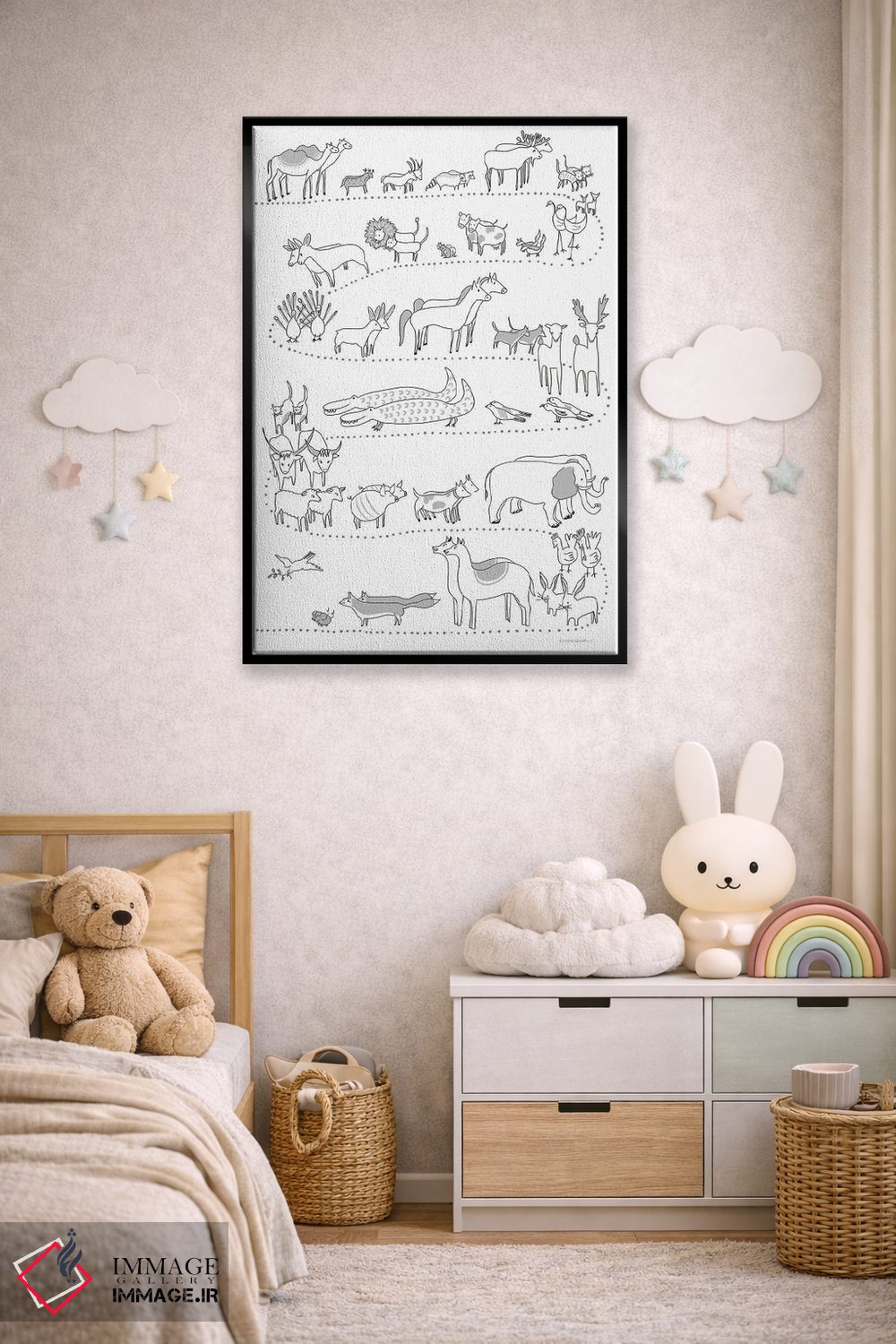 بوم گالری ایماژ نسخهی چیدماناتیوِ حرفهای از یک اثر هنری است. روی کنواس سفیدِ یکدست و بدون اسید با اجرای چاپ هنریِ دقیق به روش جیکلی (Giclée) با جوهرهای آرشیویِ حرفهای برای لایههای رنگی خواناتر؛ روی دیوار، کار یکدستتر و خوشکیفیتتر دیده میشود. هر تابلو بهصورت سفارشی روی چهارچوب کشیده میشود و با یراق مناسب آمادهی نصب است.