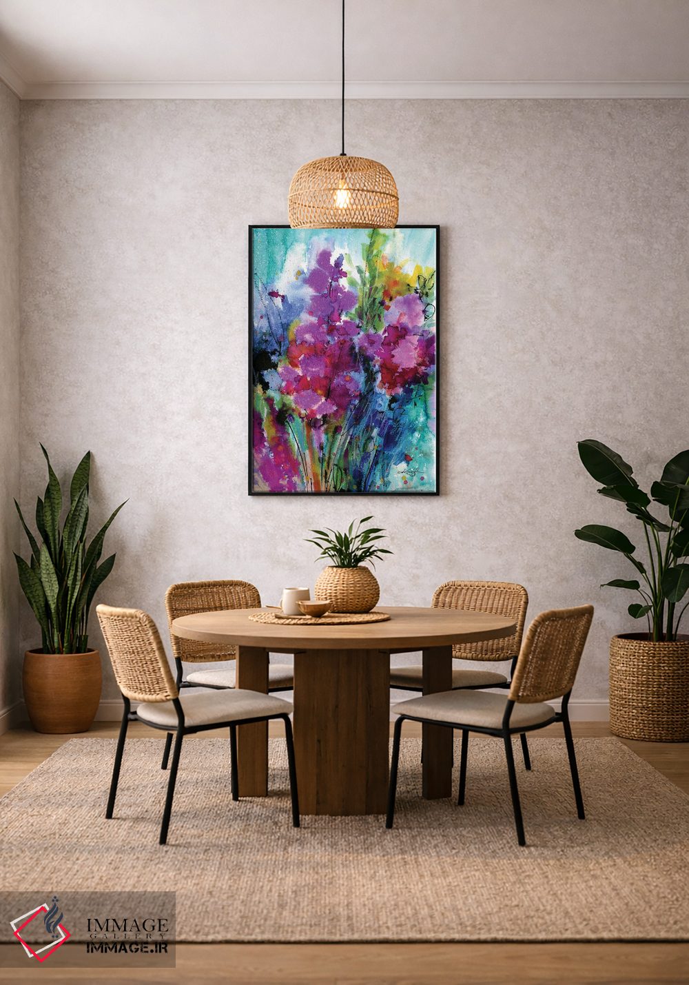 بوم گالری ایماژ نسخهی چیدماناتیوِ حرفهای از یک اثر هنری است؛ روی کنواس سفیدِ یکدست و بدون اسید با چاپ هنری به استاندارد جیکلی (Giclée) با جوهرهای آرشیویِ حرفهای برای لایههای رنگی خواناتر؛ حس نهایی نزدیکتر به ارائهی گالریوار است؛ نه صرفاً یک تصویر. سفارشیسازی و آمادهسازی تمیز باعث میشود اثر روی دیوار مرتب و حرفهای بنشیند.