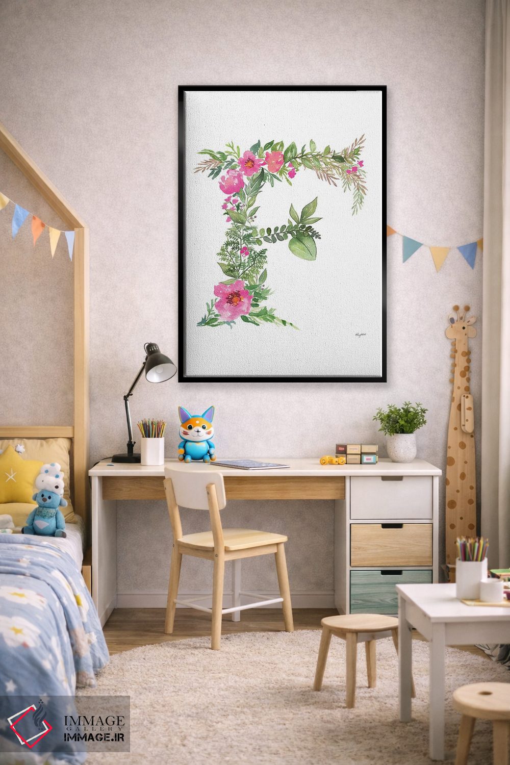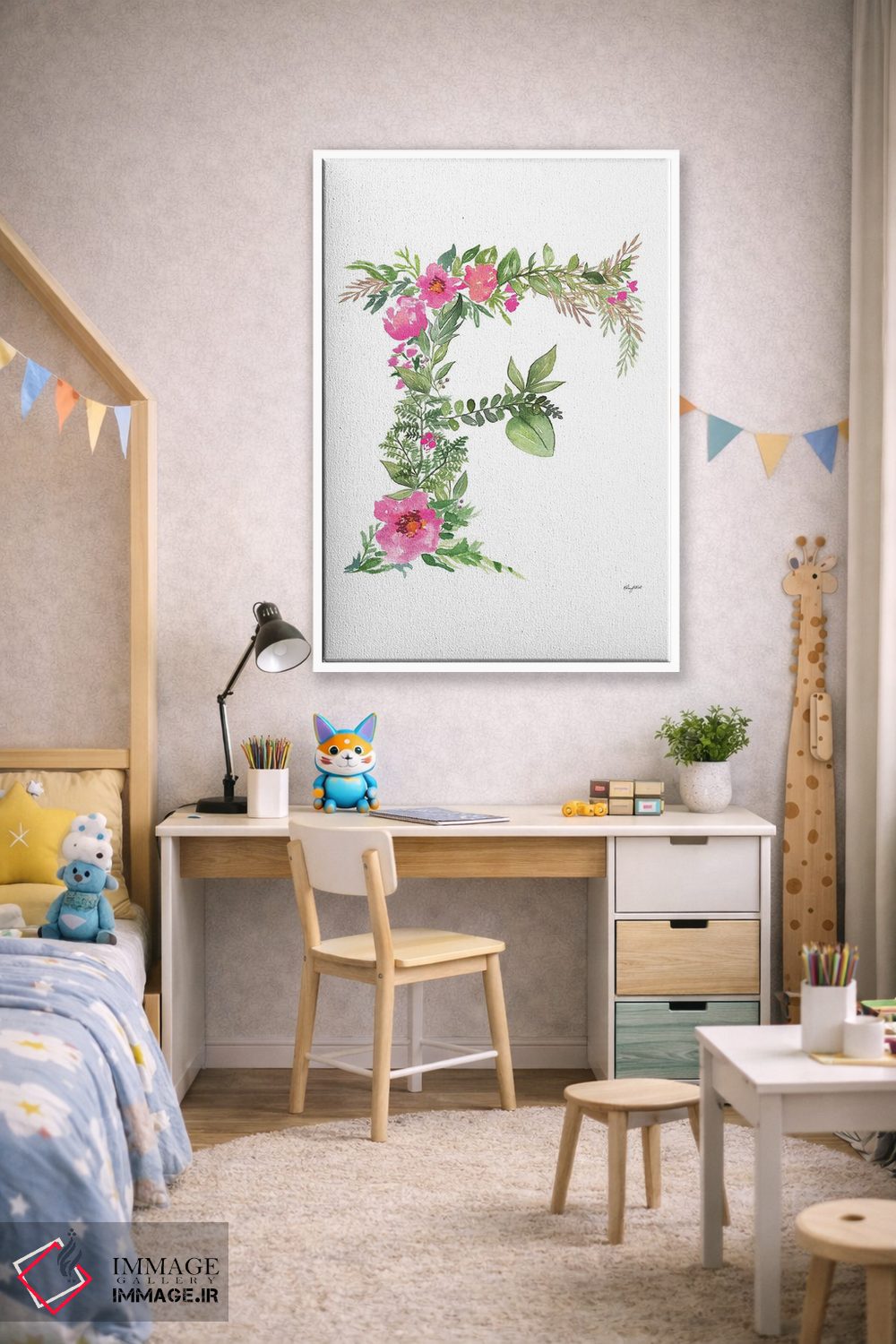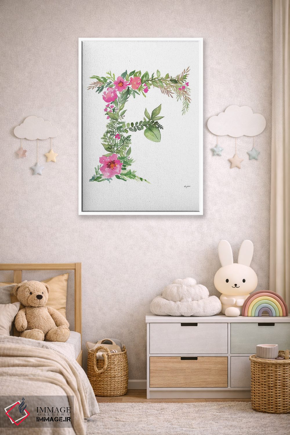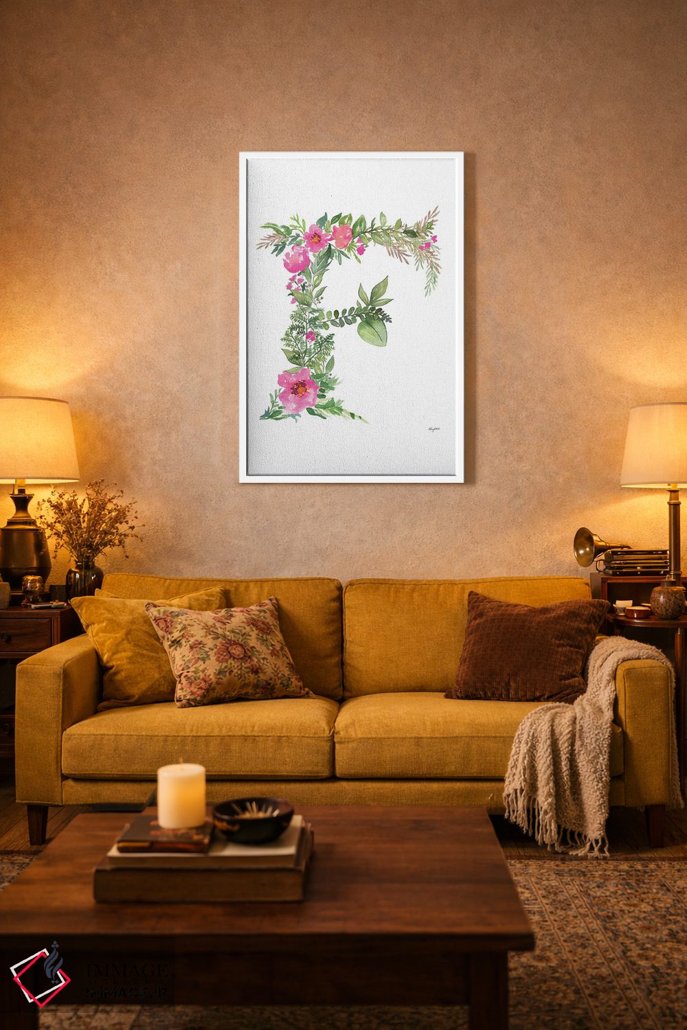 در «حرف F گیاهی» اثرِ «کلسی مکنت»، عناصر گیاهی نقش اصلی دارند؛ مناسب برای فضاهایی که دنبال آرامش و لطافت پُرانرژی.