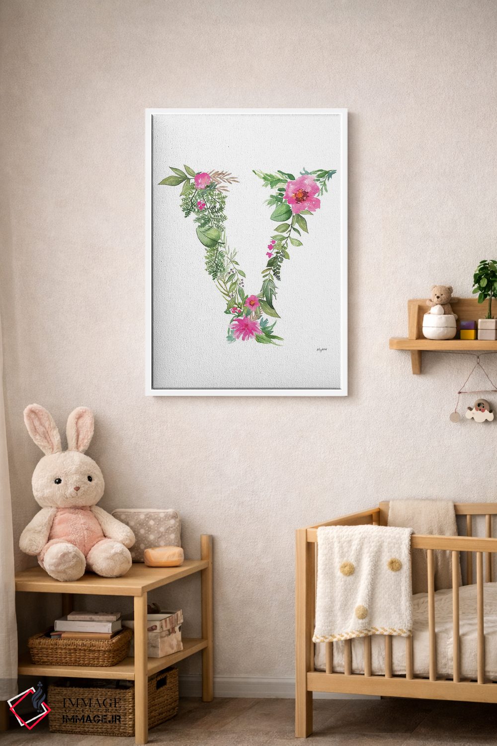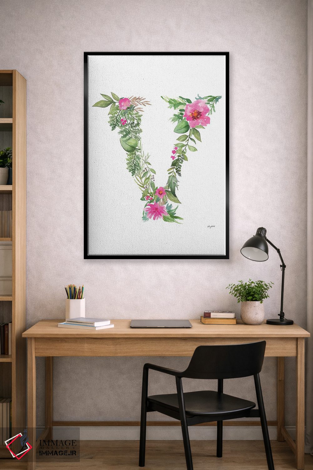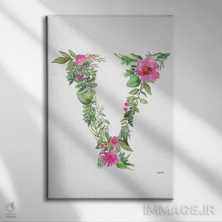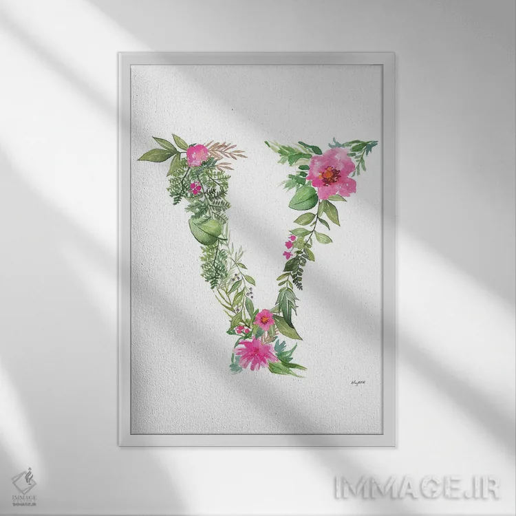 در «حرف V گیاهی» اثرِ «کلسی مکنت»، زیبایی در جزئیات است؛ اثری مناسب برای دیوارهای نزدیک و قابلدیدن از فاصلهی کوتاه.
