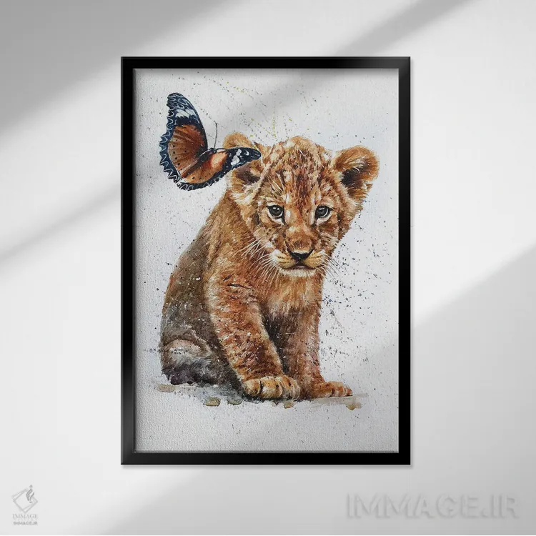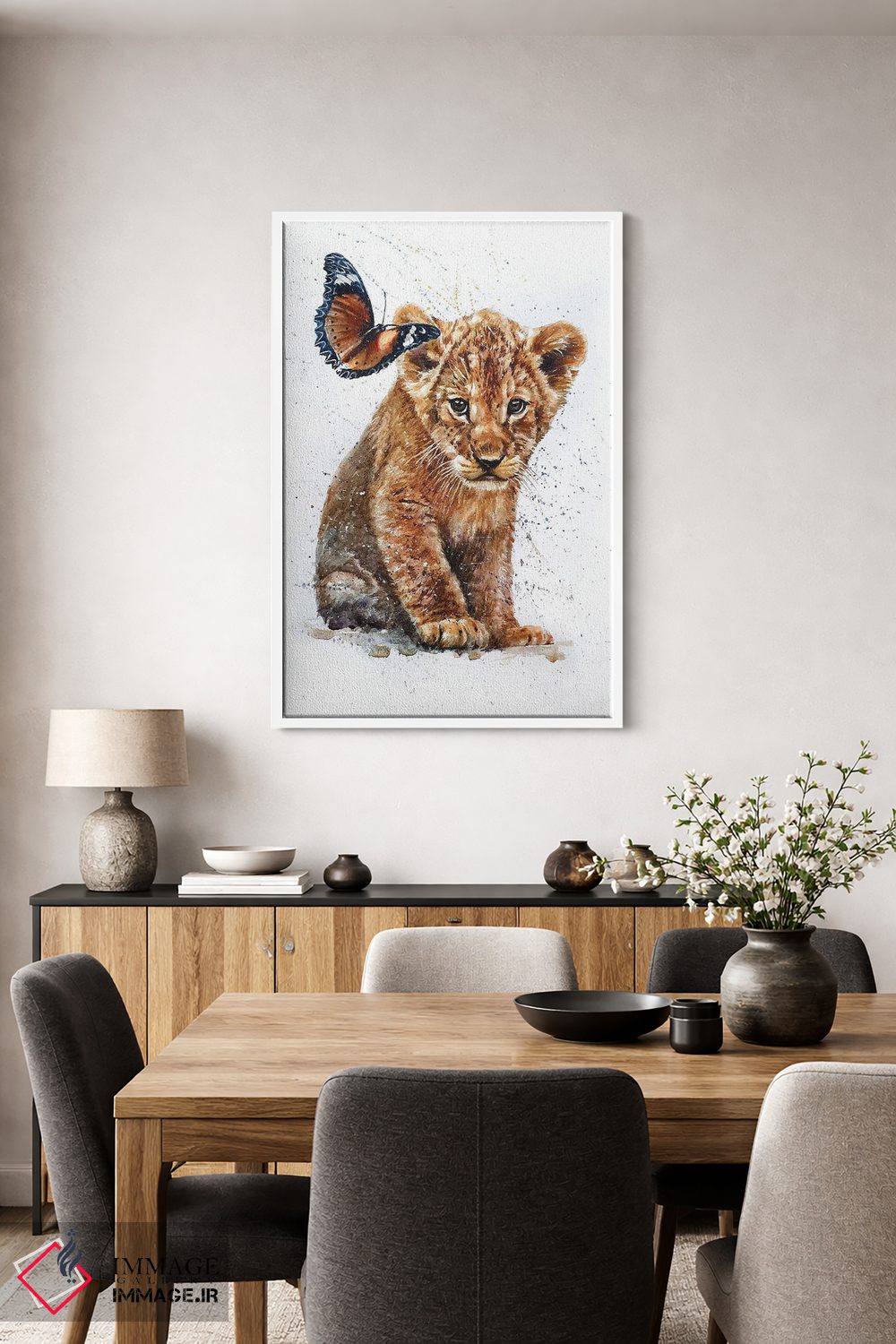 تابلو دکوراتیو شیر با پروانه اثر کنستانتین کالینین