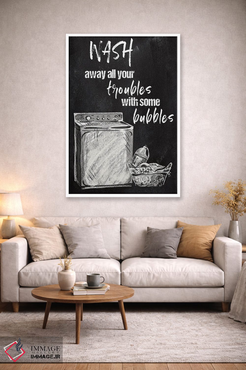 «دردهایت را بشوی» اثرِ «کنراد ناتسن» با رویکرد هنری، یک انتخاب شیک و تمیز برای دیوارهایی است که دنبال نظم و کنتراست پُرانرژی.