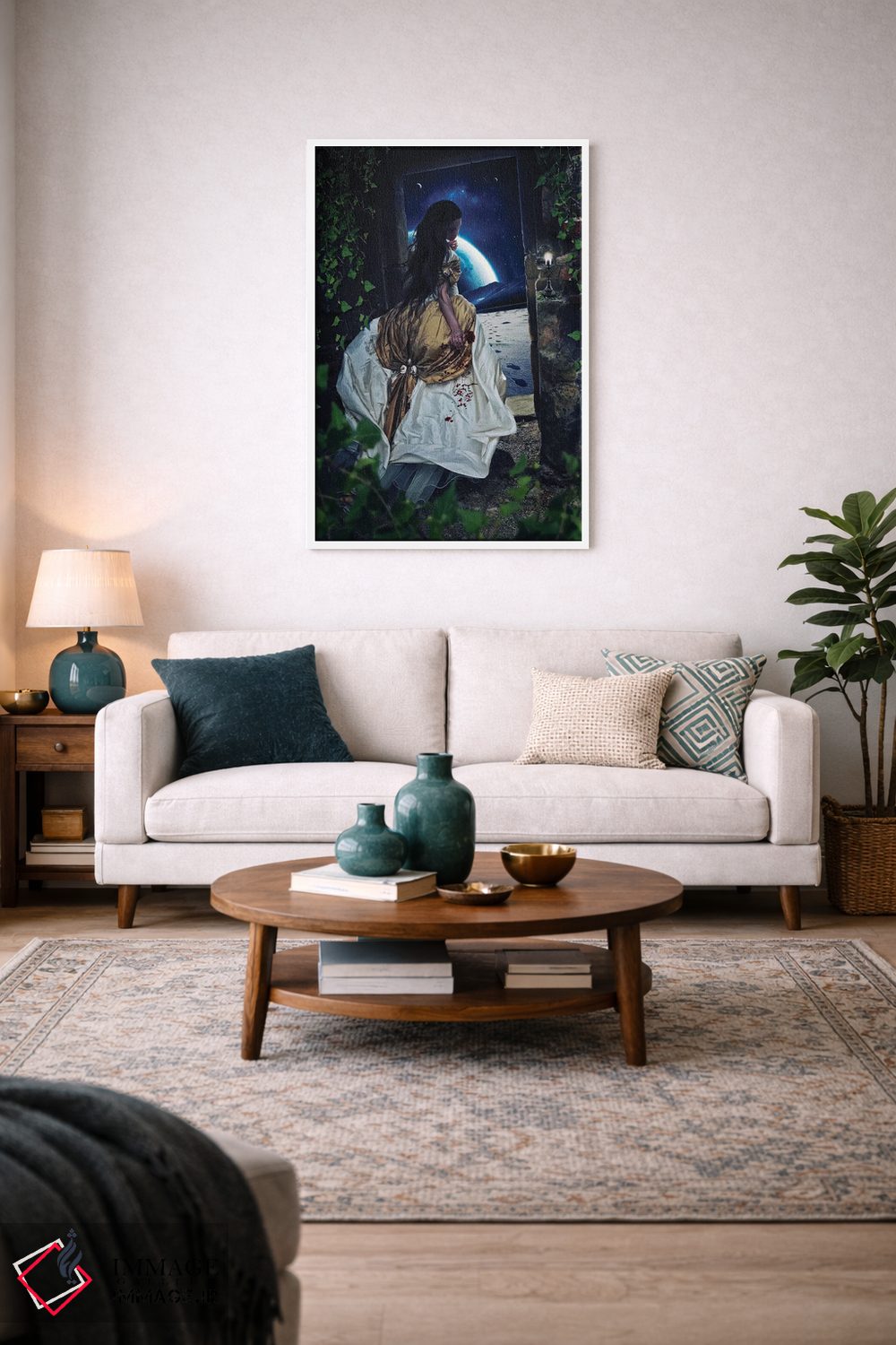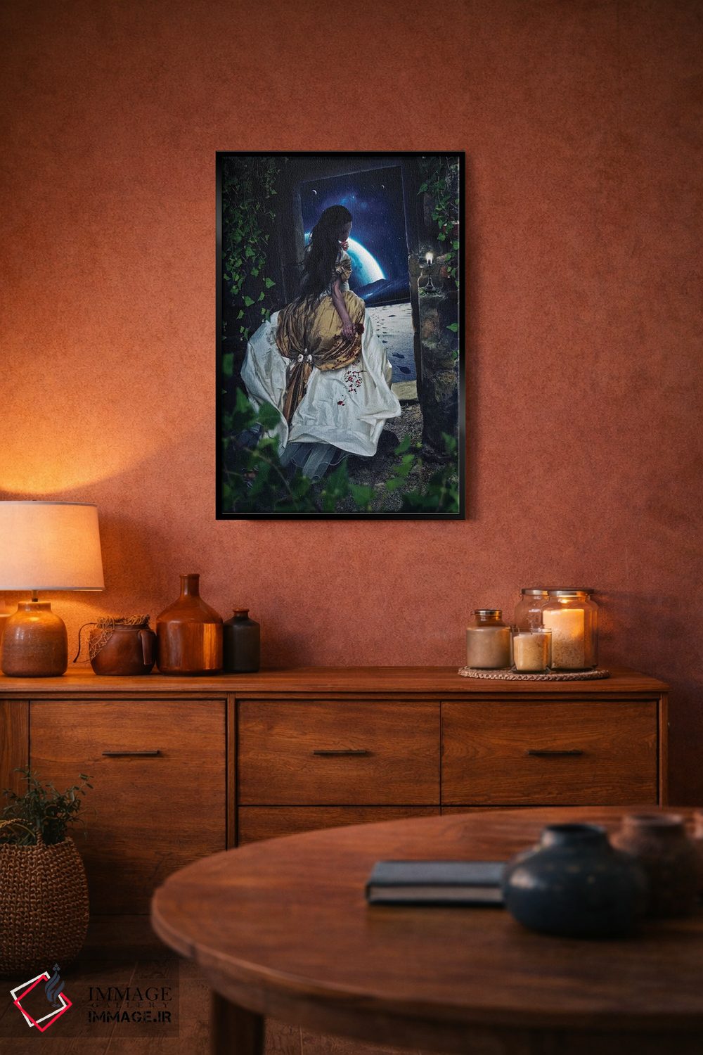 براساس پالت ترکیبی اثر، قاب تیک گرم (چوبی) پیشنهاد اول است و مشکی مات (فریم متوسط) مکمل. برای سفارشهای پروژهای با ابعاد و قابهای اختصاصی با ایماژ در تماس باشید.