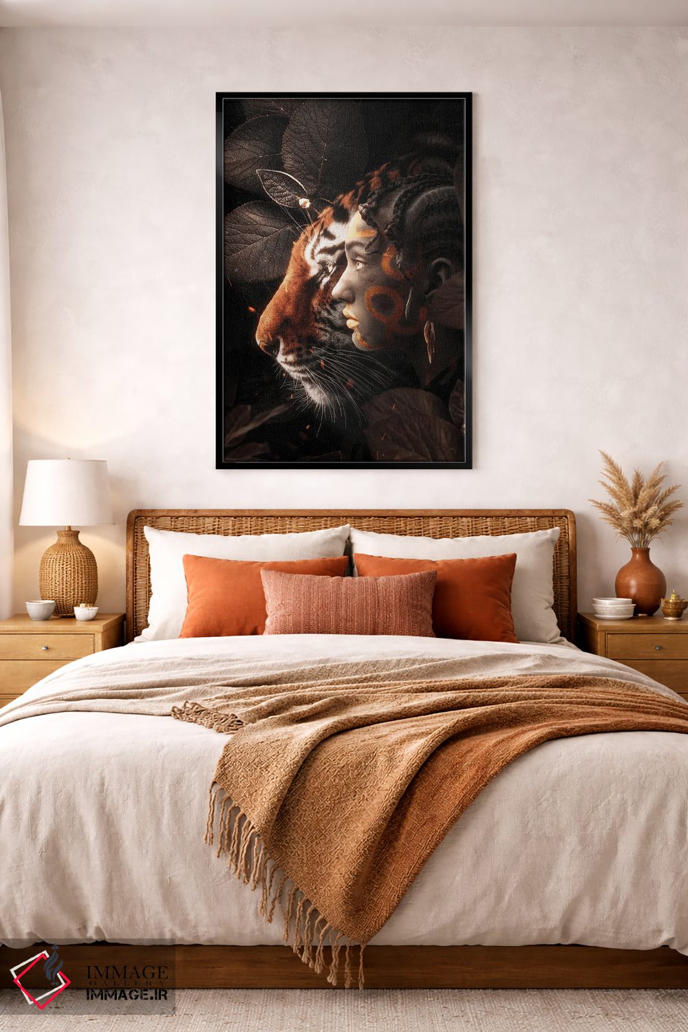 براساس پالت گرم اثر، قاب تیک گرم (چوبی) پیشنهاد اول است و مشکی مات (فریم متوسط) مکمل. برای سفارشهای پروژهای با ابعاد و قابهای اختصاصی با ایماژ در تماس باشید.