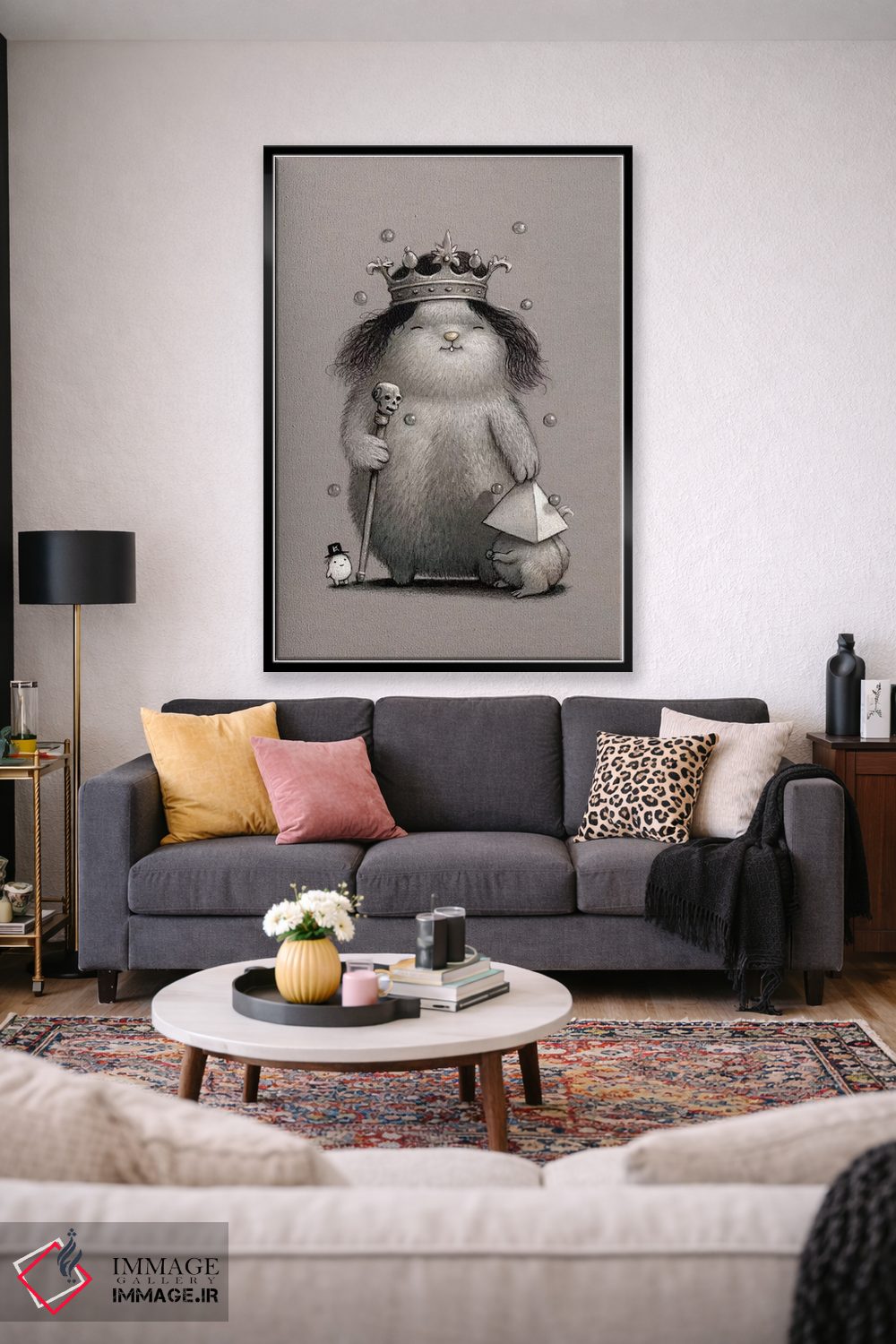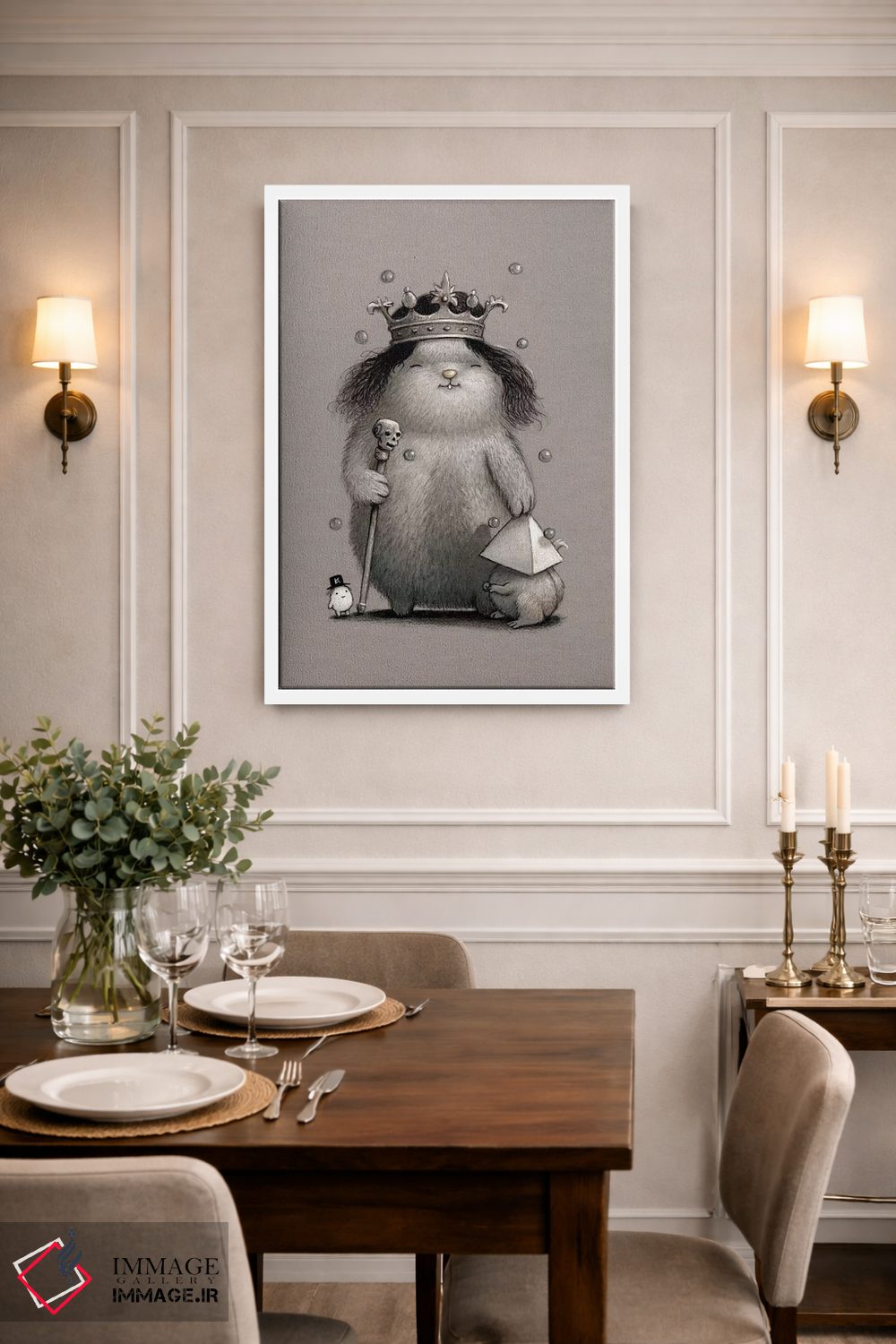 «پادشاه کیهان» اثرِ «کریستین آدام» از آن کارهاییست که در دکورهای جدیتر (نشیمن رسمی یا دفتر کار) عالی مینشیند.