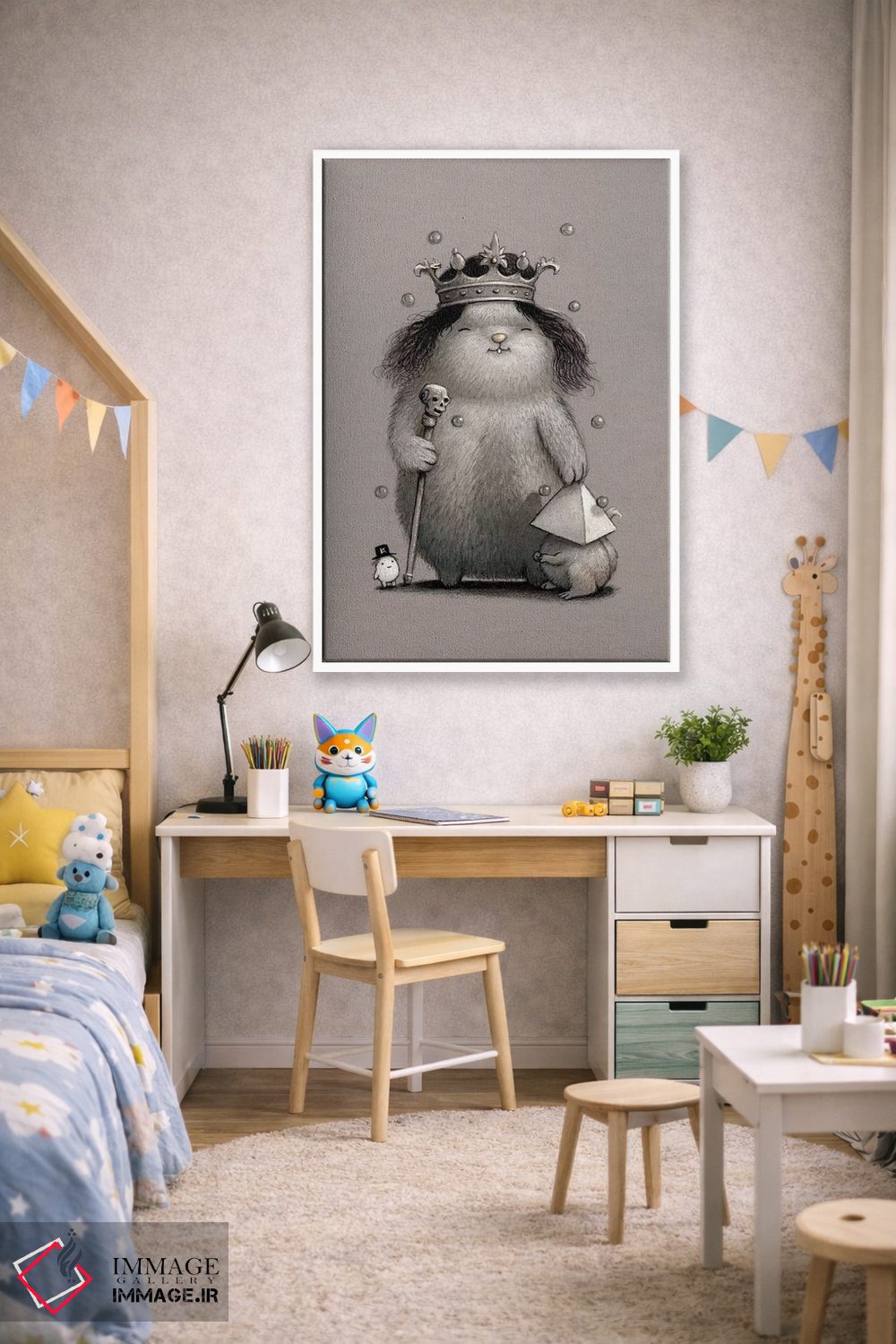 بوم گالری ایماژ نسخهی دکوراتیوِ سطحبالا از یک اثر هنری است؛ روی کنواس سفیدِ یکدست و بدون اسید با چاپ هنریِ دقیق (Giclée) برای گذارهای نرمتر و وضوح بالاتر با رنگدانههای آرشیوی و سیستم رنگ دقیق، در گذارهای رنگی، لطافت بیشتری حس میشود. تابلو پس از آمادهسازی روی کلاف کشیده میشود و نصب آن ساده و بیدردسر است.