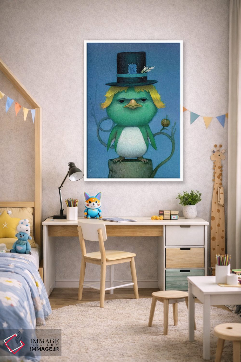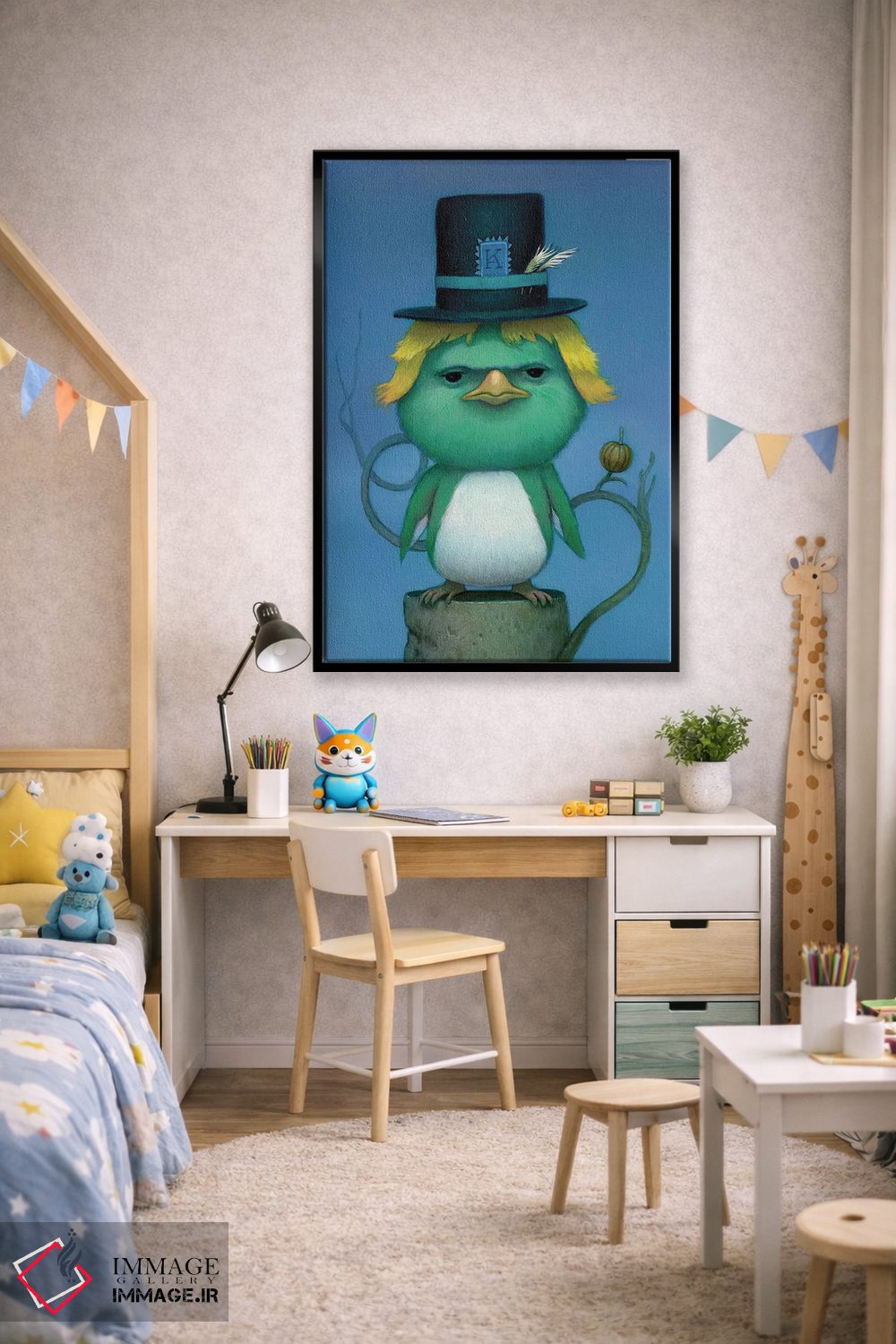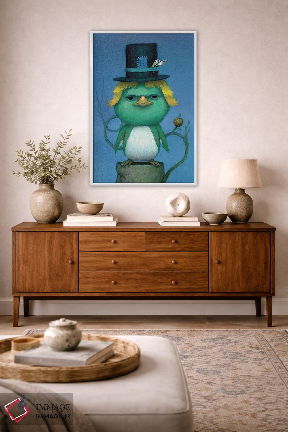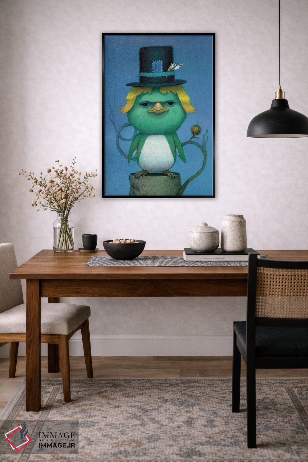 بوم گالری ایماژ نسخهی دکوراتیوِ سطحبالا از یک اثر هنری است؛ روی کنواس سفیدِ یکدست و بدون اسید با چاپ هنریِ دقیق (Giclée) برای گذارهای نرمتر و وضوح بالاتر با رنگدانههای آرشیوی و سیستم رنگ دقیق، روی دیوار، کار یکدستتر و خوشکیفیتتر دیده میشود. کلافکشی مرتب و یراق نصب استاندارد، تجربهی نصب را ساده میکند.