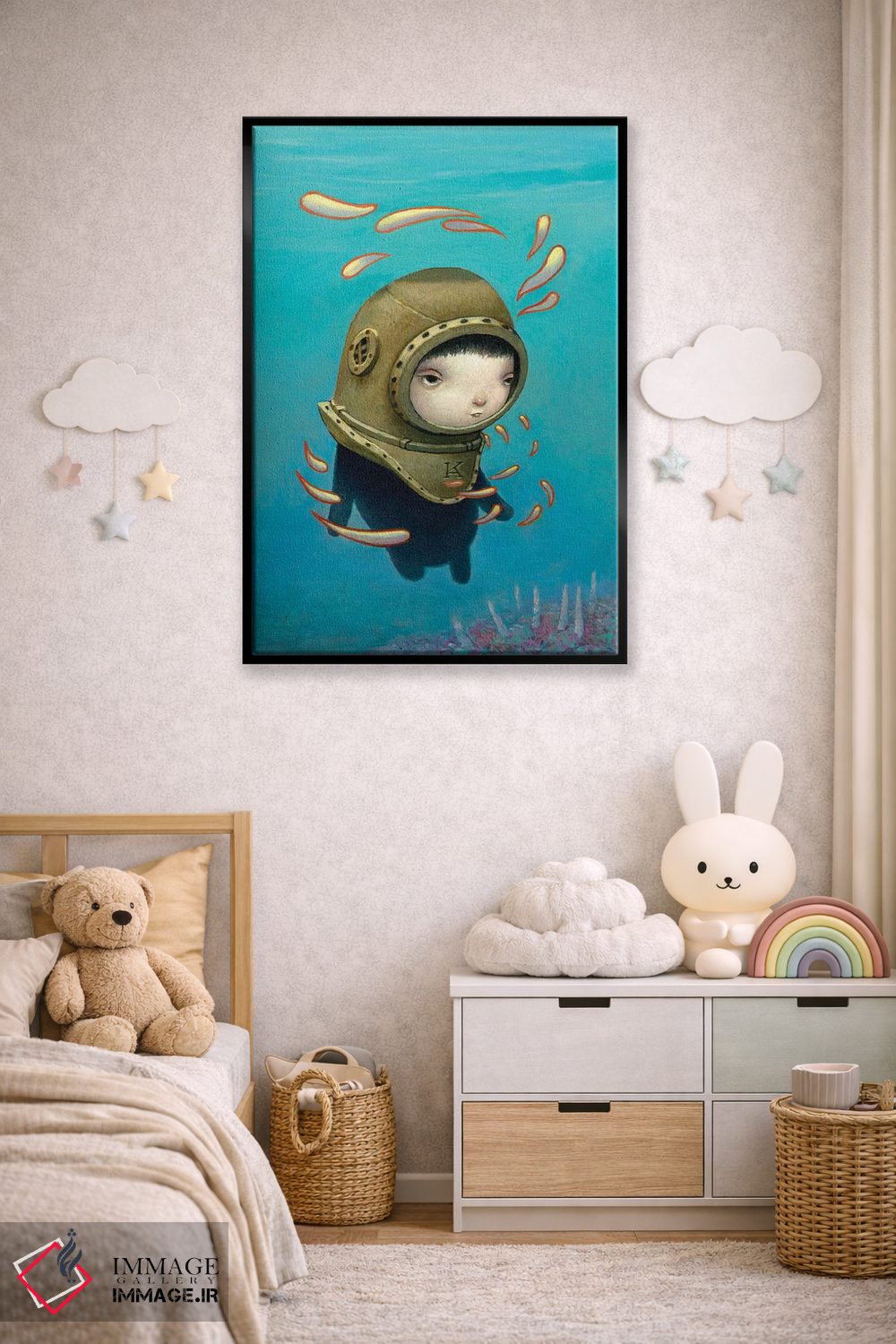 در یک جمله: اگر انتخابتان این است که اثر در فضا «باز و روشن» دیده شود، انتخاب قاب مناسب کمک بزرگی است و جلوهی گالریوار بیشتری میدهد. برای هماهنگی با رنگهای غالب فضا، تیم ایماژ کنار شماست تا نتیجه حرفهایتر دیده شود.