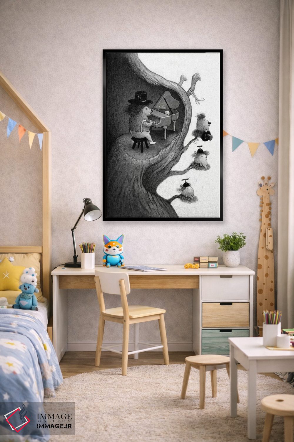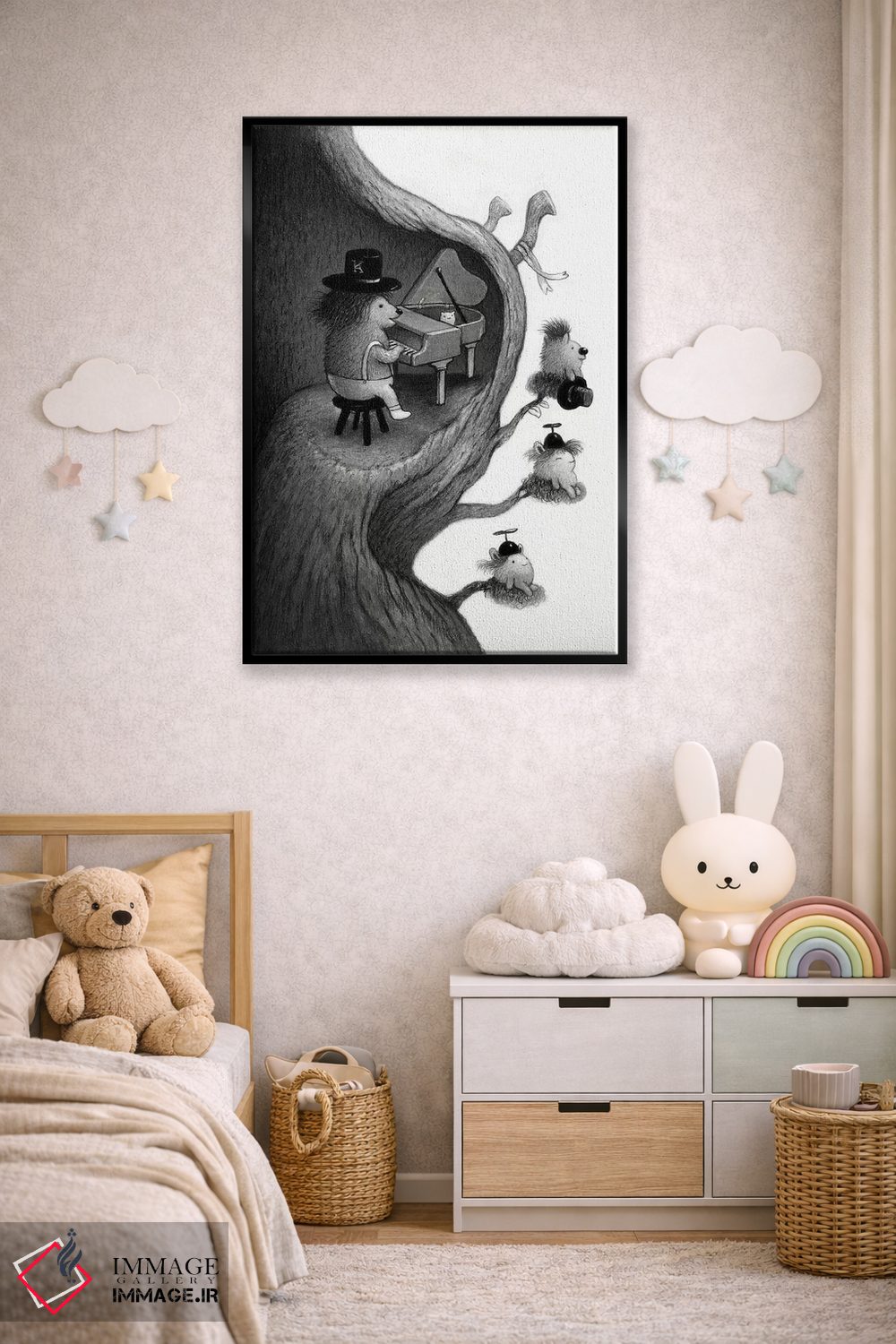 تابلو دکوراتیوِ این دسته با حسی هماهنگ؛ مناسب برای دیوار کنار اسپیکر، پیانو یا فضای تمرین اثرِ «کریستین آدام».