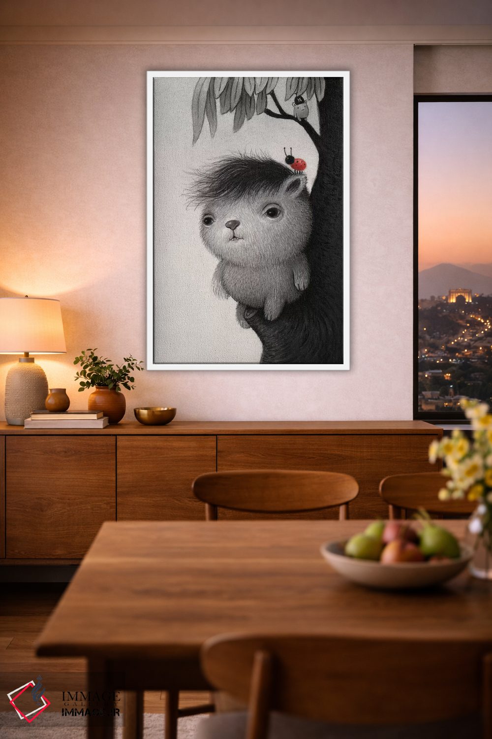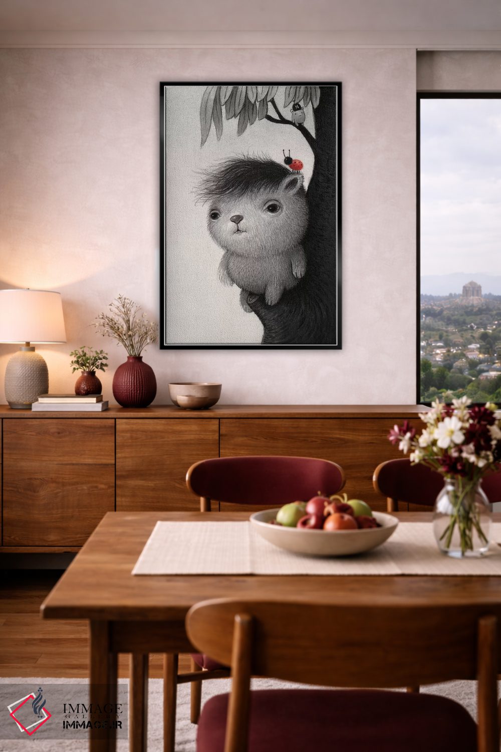 بوم گالری ایماژ طوری طراحی شده که اثر روی دیوار «پرداختشده» و حرفهای دیده شود—نه پرزرقوبرقِ بیپایه؛ بلکه دقیق و خوشپرداخت. بافت ظریف کنواس باعث میشود حس اثر هنری را در نگاه نزدیک نگه میدارد. قابپذیری باعث میشود بتواند اثر را نقطهٔ کانونی فضا کند. در نهایت، نتیجه چیزی شبیه تفاوت نسخهی معمولی با نسخهی باکیفیتتر است: نه رنگِ بیشتر، بلکه پرداخت بهتر؛ و اگر بخواهید، میتوان چیدمان را برای گالریوال هم پیشنهاد داد.