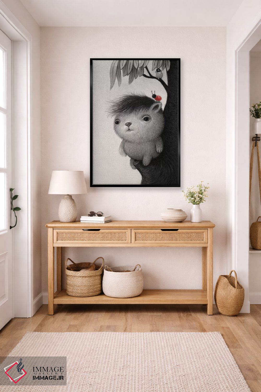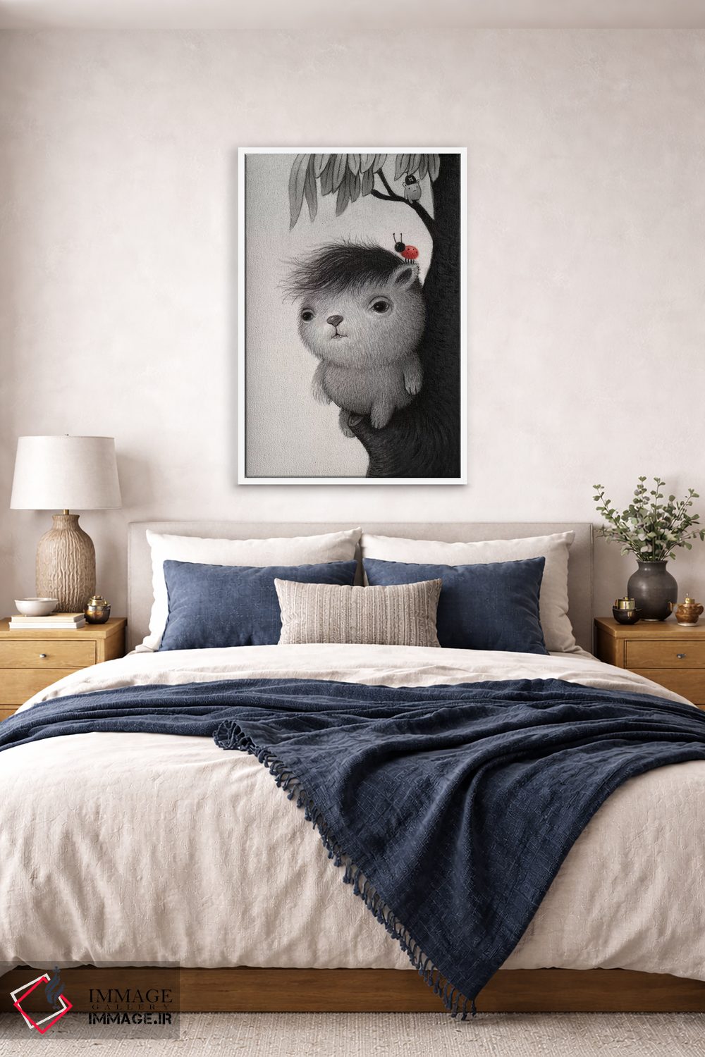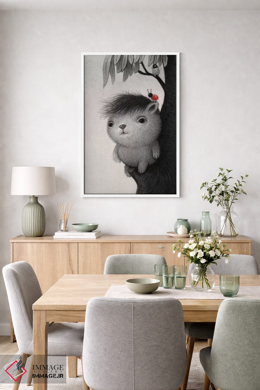 براساس پالت خنثی اثر، قاب مشکی مات (فریم باریک) پیشنهاد اول است و سفید مات (فریم باریک) مکمل. برای سفارشهای پروژهای با ابعاد و قابهای اختصاصی با ایماژ در تماس باشید.