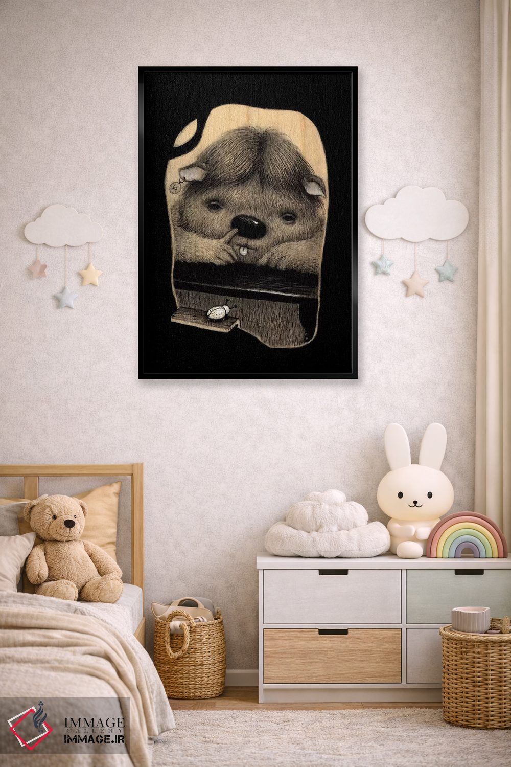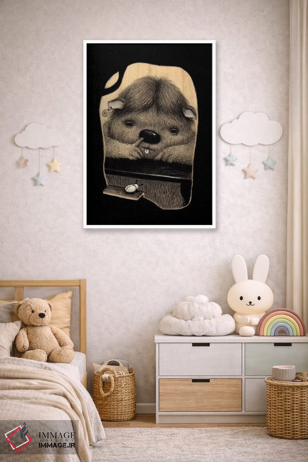 بوم گالری ایماژ نسخهی چیدماناتیوِ سطحبالا از یک اثر هنری است؛ روی کنواس بدون اسید با بافت ظریف و یکنواخت با اجرای چاپ هنری جیکلی (Giclée) برای آرتپرینتهای جدی و رنگدانههای آرشیوی Epson UltraChrome HDR؛ روی دیوار، کار یکدستتر و خوشکیفیتتر دیده میشود. تابلو پس از آمادهسازی روی کلاف کشیده میشود و نصب آن ساده و بیدردسر است.