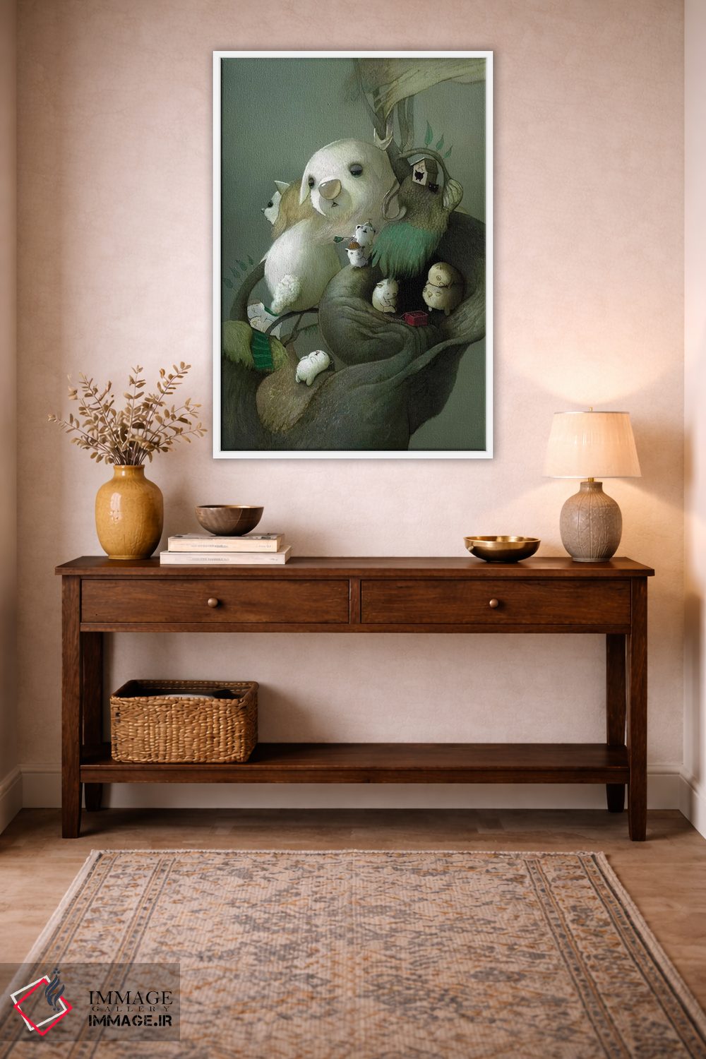 بوم گالری ایماژ نسخهی دکوراتیوِ سطحبالا از یک اثر هنری است؛ روی کنواس بدون اسید با بافت ظریف و یکنواخت با چاپ هنریِ دقیق (Giclée) برای گذارهای نرمتر و وضوح بالاتر و جوهرهای آرشیوی Epson UltraChrome HDR برای بازنمایی بهتر تونهای حساس، نتیجه، تصویرسازیِ دقیقتر و حس ارائهی گالریوار است. هر تابلو بهصورت سفارشی روی چهارچوب کشیده میشود و با یراق مناسب آمادهی نصب است.
