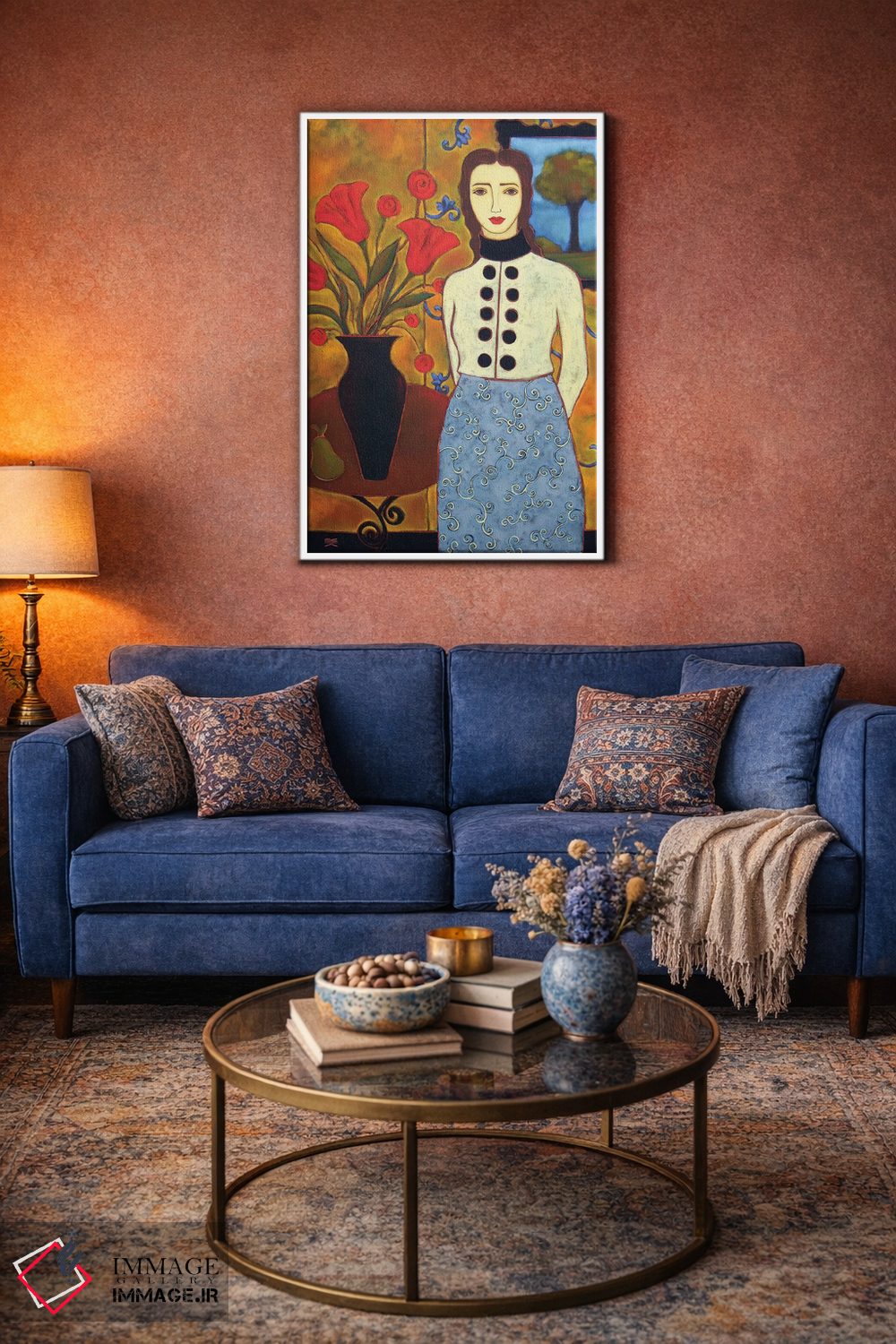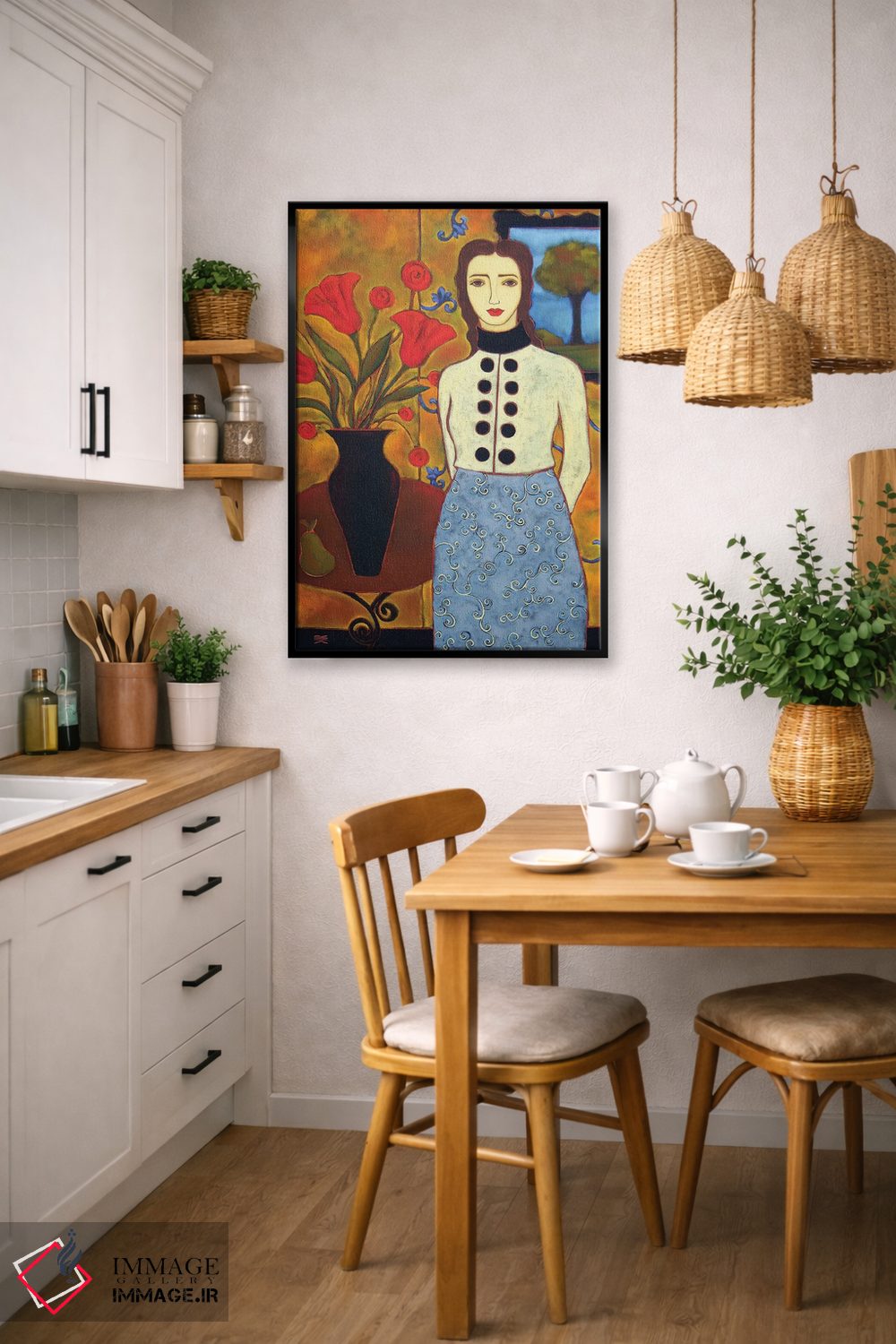 براساس پالت ترکیبی اثر، قاب تیک گرم (چوبی) پیشنهاد اول است و مشکی مات (فریم متوسط) مکمل. برای سفارشهای پروژهای با ابعاد و قابهای اختصاصی با ایماژ در تماس باشید.