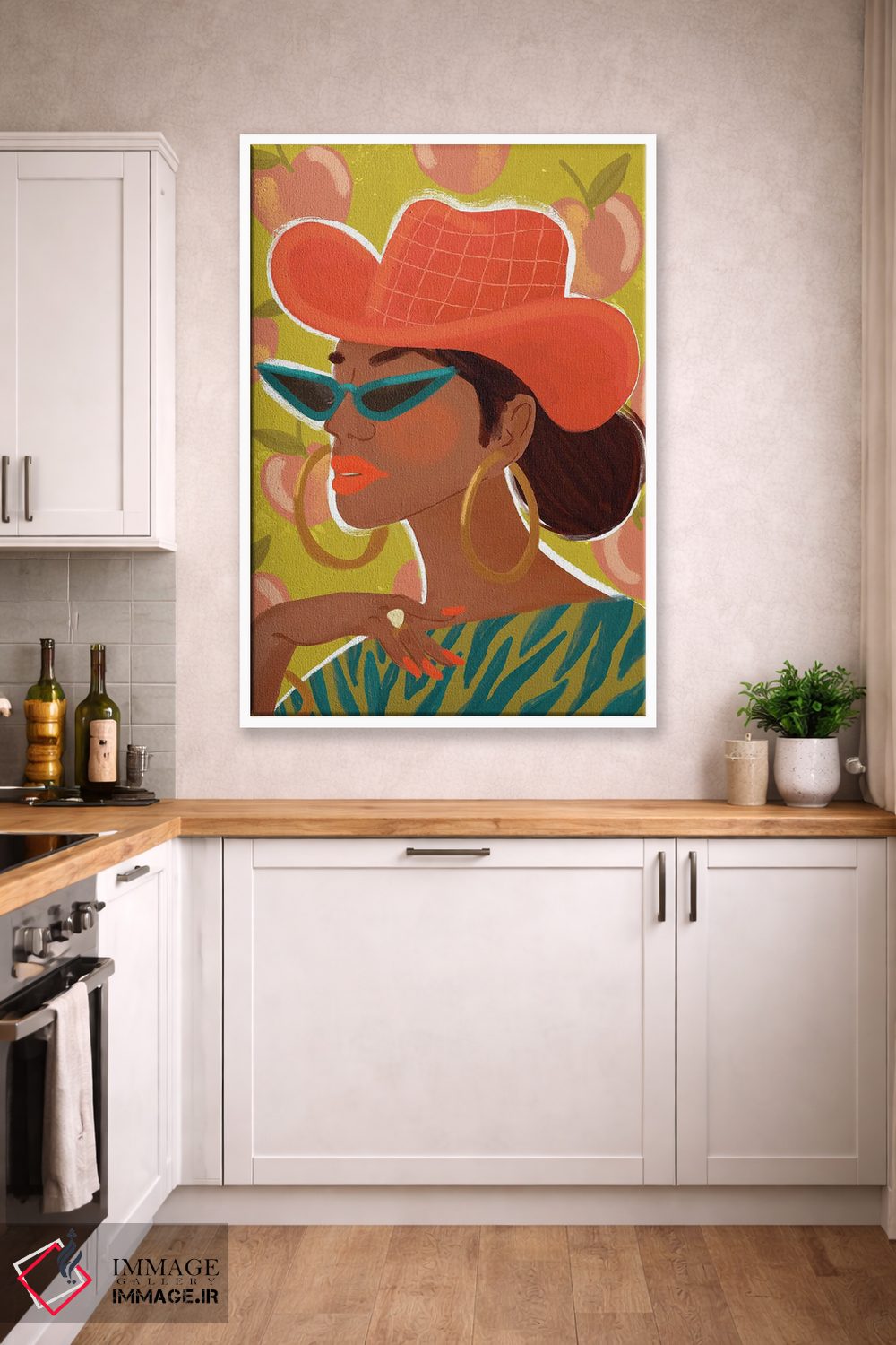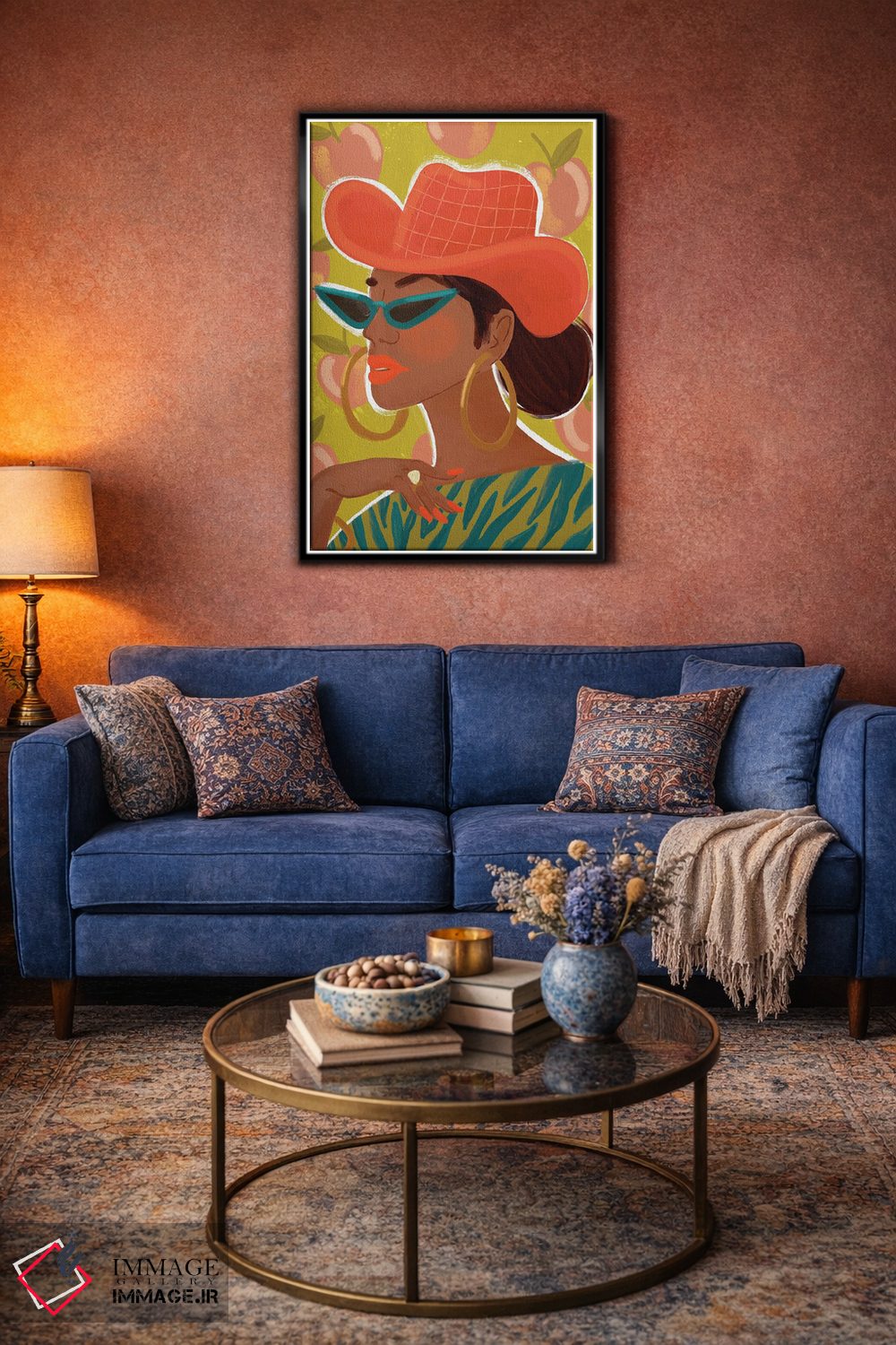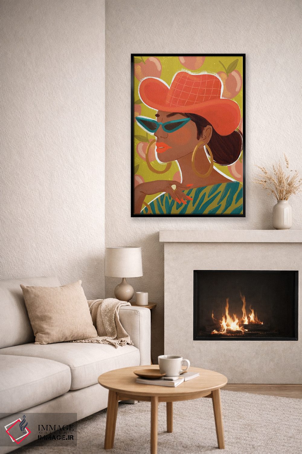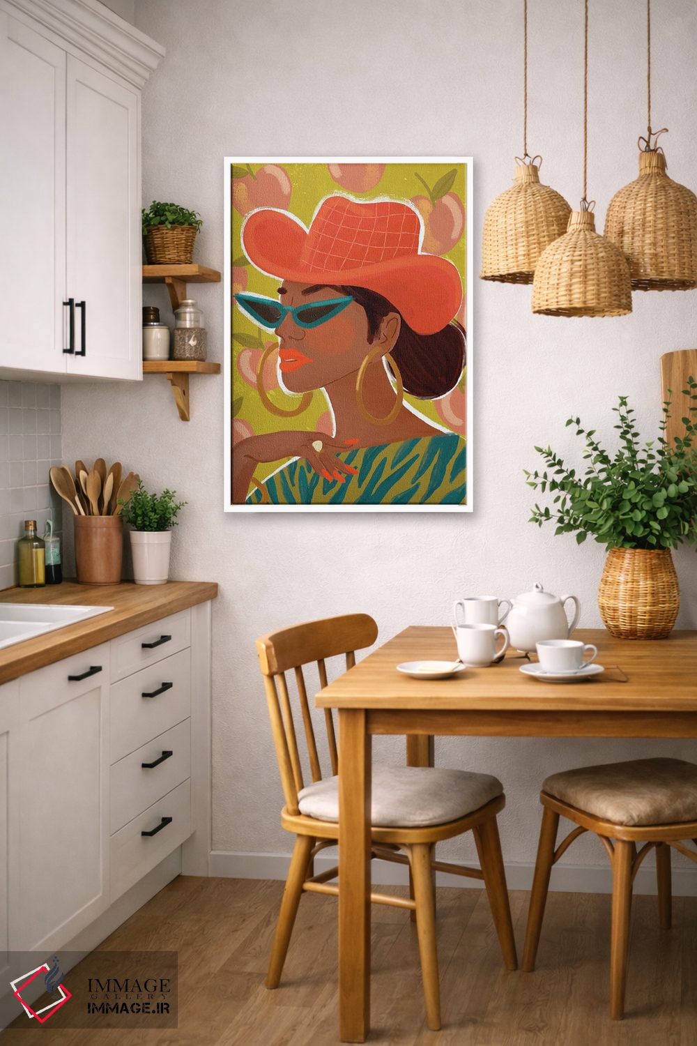 براساس پالت ترکیبی اثر، قاب تیک گرم (چوبی) پیشنهاد اول است و مشکی مات (فریم متوسط) مکمل. برای سفارشهای پروژهای با ابعاد و قابهای اختصاصی با ایماژ در تماس باشید.