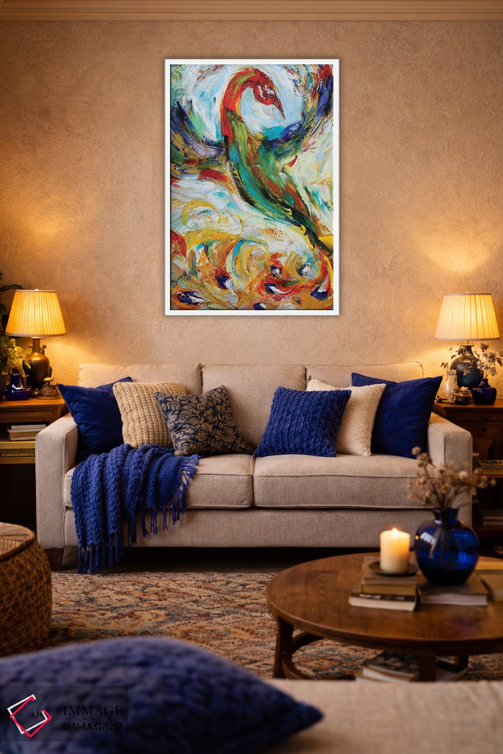 طراحی بوم گالری ایماژ بهگونهای است که اثر روی دیوار «پرداختشده» و حرفهای دیده شود—نه پرزرقوبرقِ بیپایه؛ بلکه دقیق و خوشپرداخت. بافت ظریف کنواس باعث میشود حس اثر هنری را در نگاه نزدیک نگه میدارد بهخصوص وقتی نور موضعی ملایم داشته باشید. با قابپذیری، هماهنگی قاب با پالت رنگ جلوه را تقویت میکند. حاصل کار، یک تابلو خوشنشین است که هم از دور اثرگذار است و هم از نزدیک خوشخوان؛ اگر محیط کمینهگرا است، همین پرداخت تمیز کافی است.
