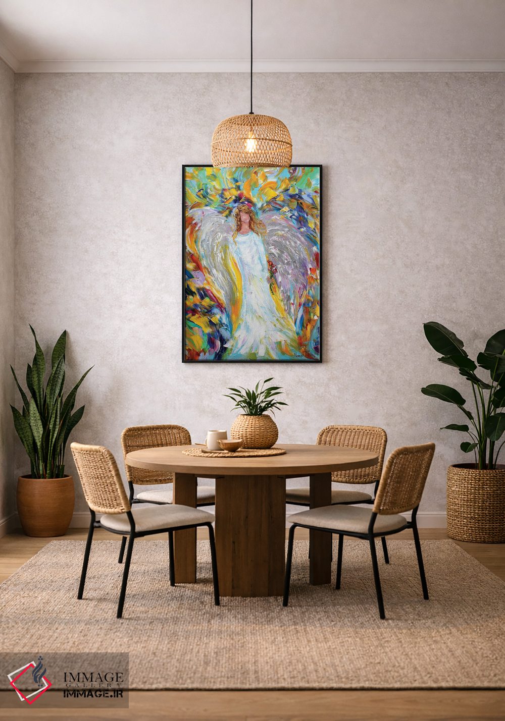 بوم گالری ایماژ طوری طراحی شده که اثر روی دیوار «پرداختشده» و حرفهای دیده شود—نه پرزرقوبرقِ بیپایه؛ بلکه دقیق و خوشپرداخت. بافت ظریف کنواس کمک میکند حس اثر هنری را در نگاه نزدیک نگه میدارد بهخصوص وقتی نور موضعی ملایم داشته باشید. قابپذیری کمک میکند تا بتواند اثر را نقطهٔ کانونی محیط کند و نتیجه را یکدستتر میکند. حاصل کار، یک تابلو خوشنشین است که هم از دور اثرگذار است و هم از نزدیک خوشخوان؛ در فضاهای کاری، این نظم بصری خیلی به چشم میآید.