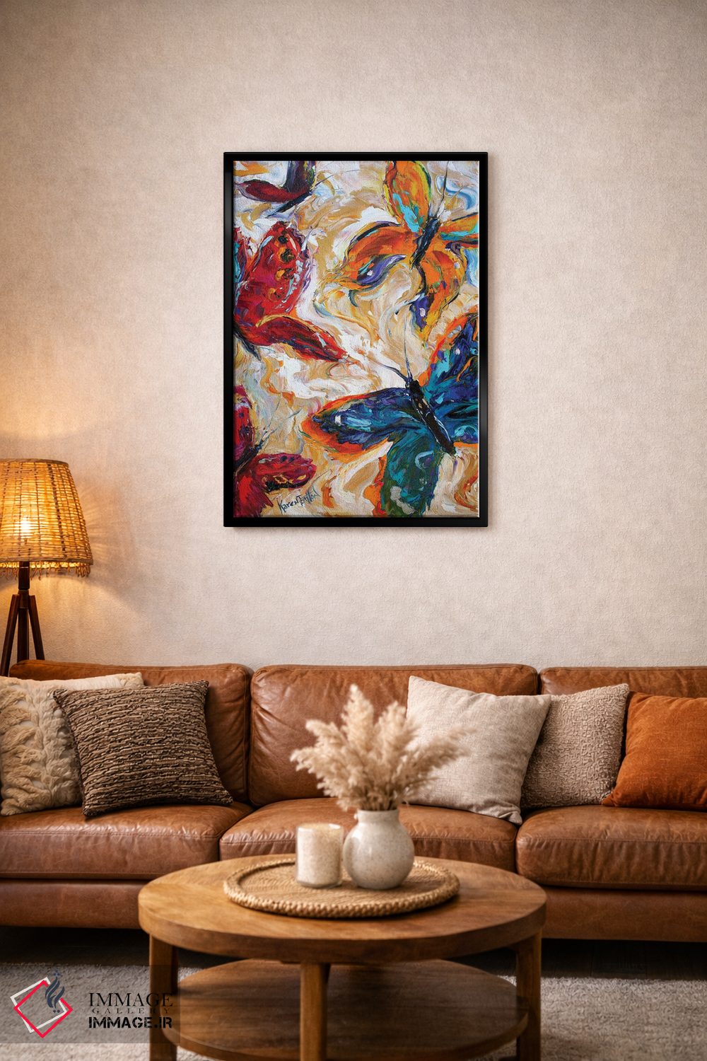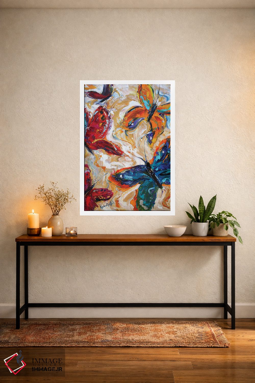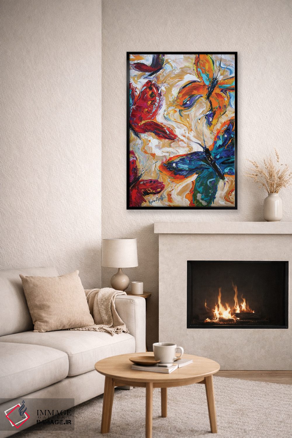 اگر به آثار حیوانات علاقه دارید، «پروانهها» اثرِ «کارن تارلتون» به دیوار، انرژیِ نرم و زنده میدهد، برای فضاهای روستیک یا بوهو گزینهٔ مناسبیست. با قاب چوبی یا مشکی، حس مرتبتری پیدا میکند.